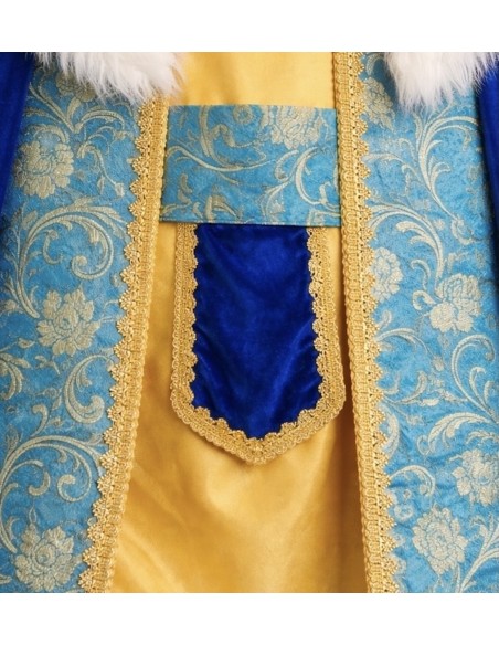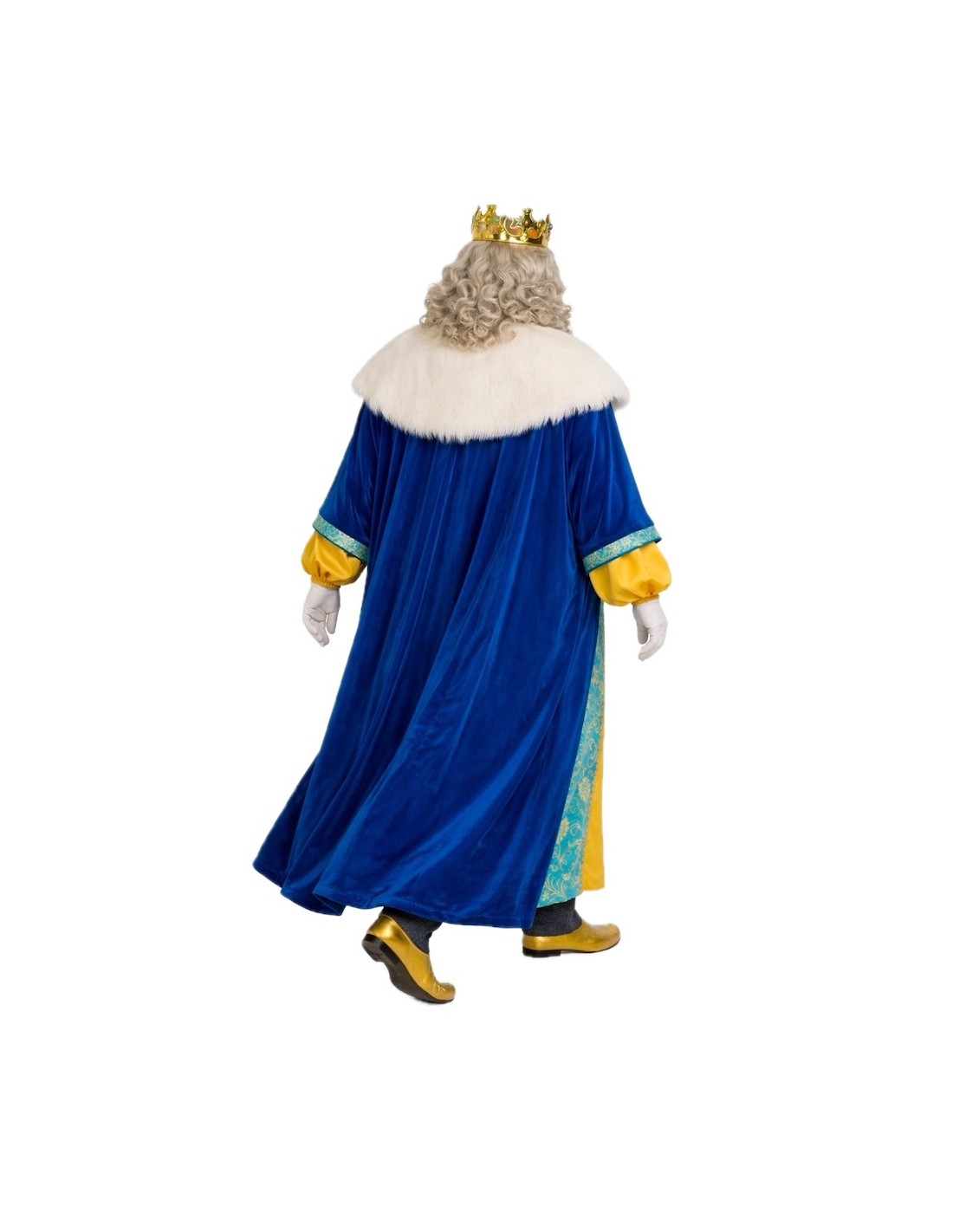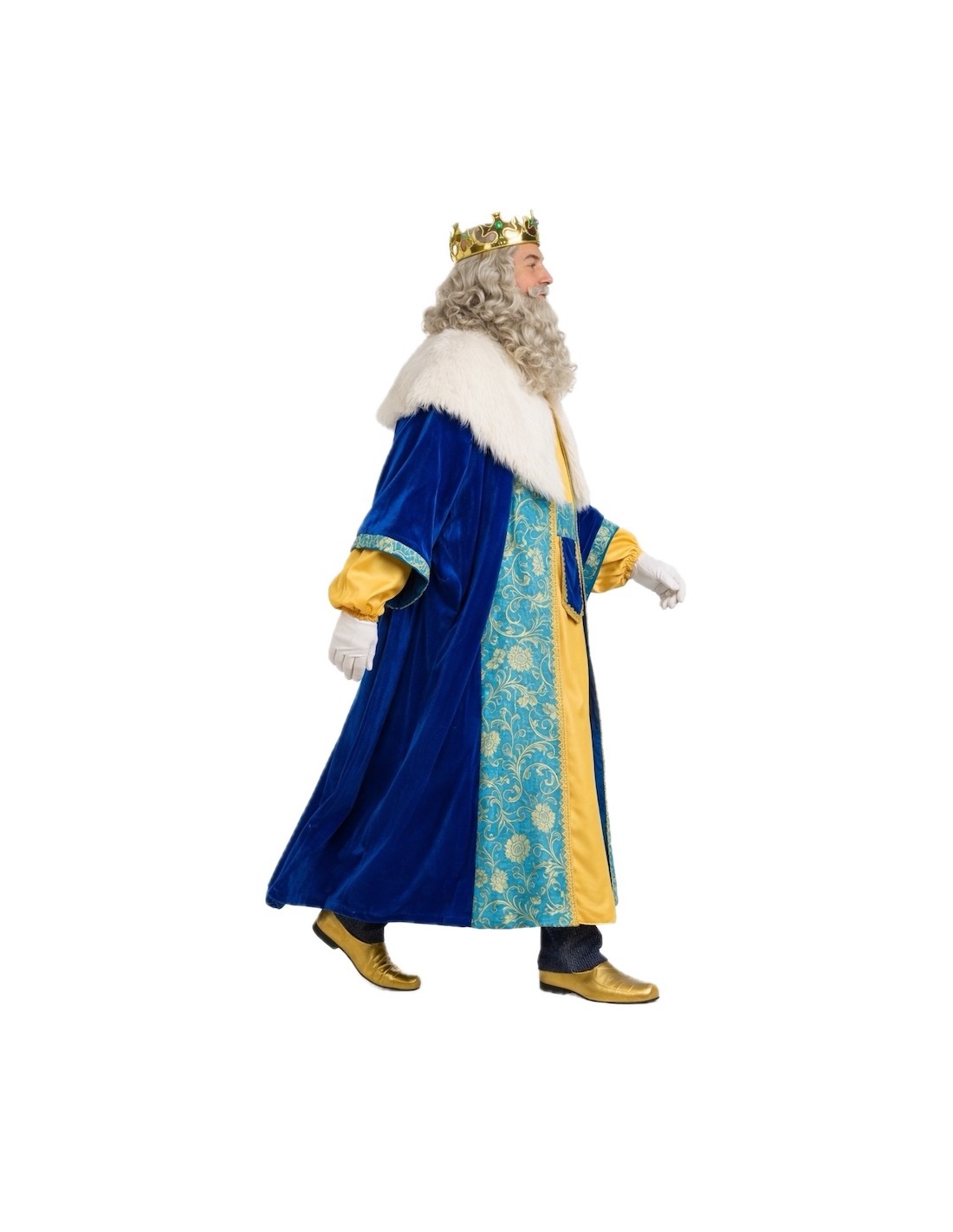 Éblouissez comme un véritable Roi Mage avec ce luxueux costume de grande qualité. Il comprend une cape en velours doux avec un col en fausse fourrure, rehaussée par un devant et des manches en un exquis tissu brocart façon damas et une délicate passementerie dorée. La tunique en satin fluide, avec des poignets élastiques confortables et une fermeture arrière en velcro, apporte une touche royale et élégante. Pour compléter l'ensemble, une spectaculaire ceinture en brocart et velours avec des détails dorés, ajustable avec un nœud. Idéal pour les défilés, les cavalcades et les événements inoubliables.