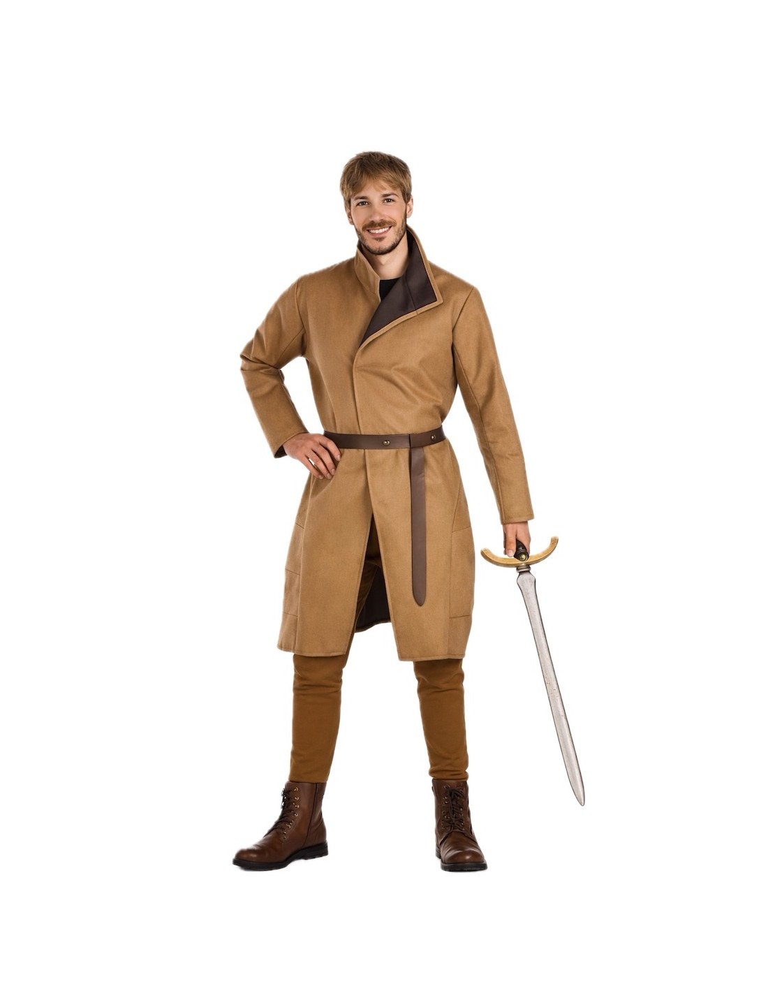 Ce superbe costume de tunique médiévale pour adulte est idéal pour vous transporter à l'époque des chevaliers et des châteaux. Fabriquée dans un tissu au toucher velours sur un filtre dense, la tunique offre une structure ferme qui met en valeur sa forme élégante et authentique. La fermeture avant, réalisée grâce à un pratique système de velcro, garantit une mise en place facile et un ajustement confortable. L'ensemble est complété par une ceinture imitant le cuir et ornée de pièces de bronze qui ajoutent une touche distinctive et médiévale. Parfait pour des fêtes à thème, des événements de reconstitution historique ; ce costume allie qualité et style, vous permettant d'incarner un noble guerrier avec un grand réalisme.