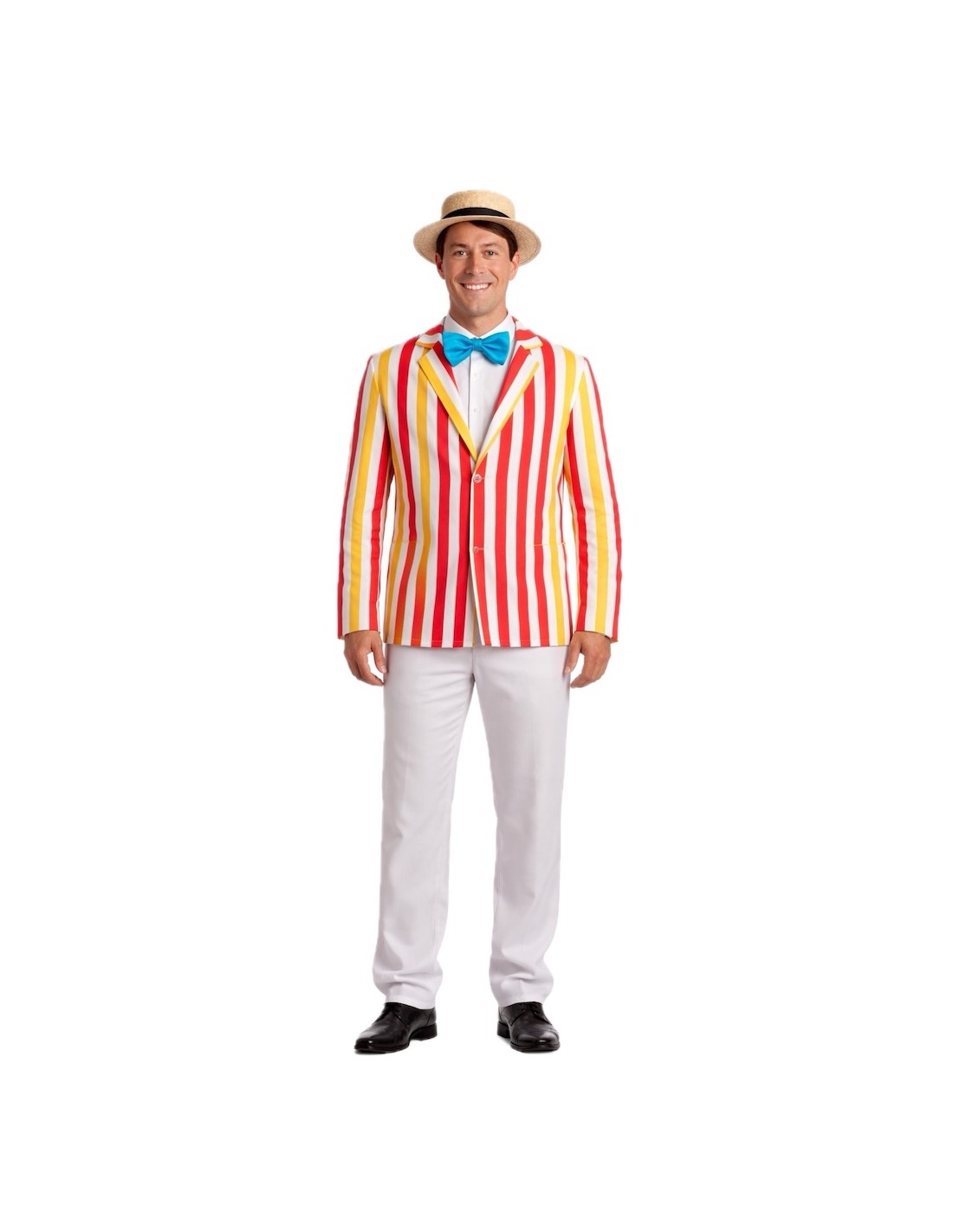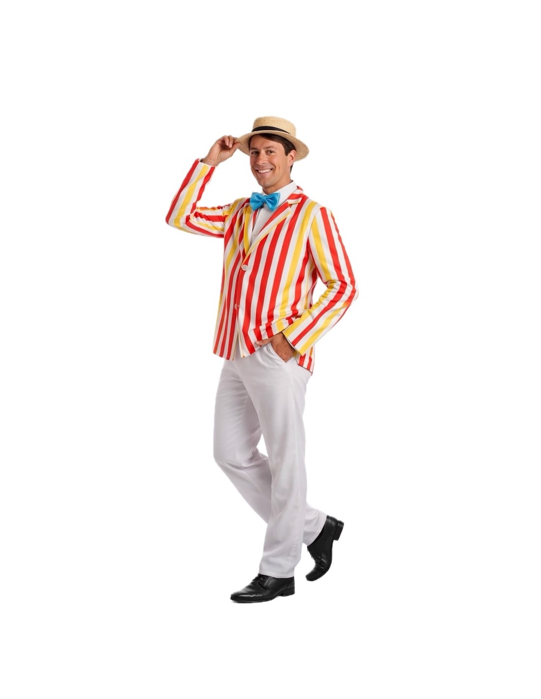 Revivez la magie du Londres le plus charmant avec ce costume élégant. Il comprend une veste de style américain en polyester doux avec des boutons fonctionnels sur le devant et un pantalon assorti avec une taille élastique et une poche intérieure pour plus de confort. La fausse chemise, en tricot, se ferme à l'arrière avec du velcro et comporte un nœud papillon ajustable dans le dos. Il est complété par un nœud papillon en satin avec une bande velcro pour un ajustement parfait. Un ensemble confortable, polyvalent et plein de charme, idéal pour des spectacles, des fêtes ou des reconstitutions thématiques.
