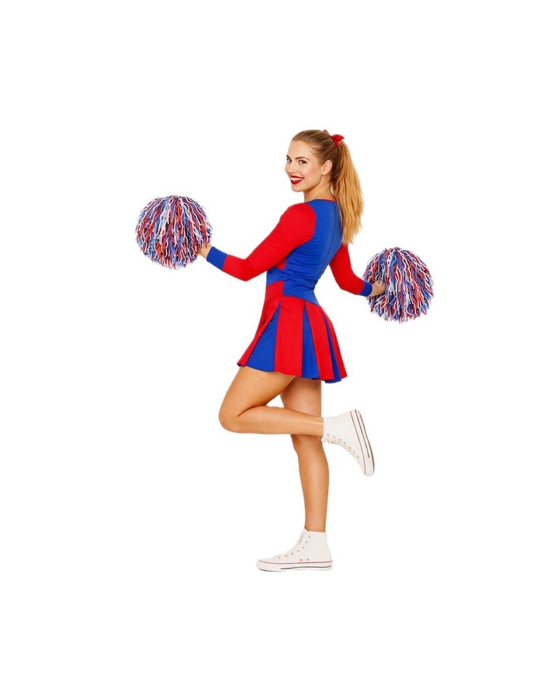 Énergie et style dans chaque mouvement ! Ce costume de pom-pom girl frappant comprend une robe courte aux couleurs vives rouge, bleu et blanc, avec une taille ajustée et une jupe évasée qui apporte du dynamisme. Fabriqué en doux jersey semi-élastique, il offre confort et liberté de mouvement pour animer sans limites. Le design intègre le mot CHEER sur la poitrine, apportant une touche authentique et sportive. Idéal pour les fêtes à thème, les défilés ou les événements scolaires, son tissu léger s'adapte à la silhouette en l'embellissant pour un résultat plein d'énergie et d'illusion.