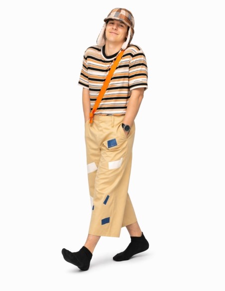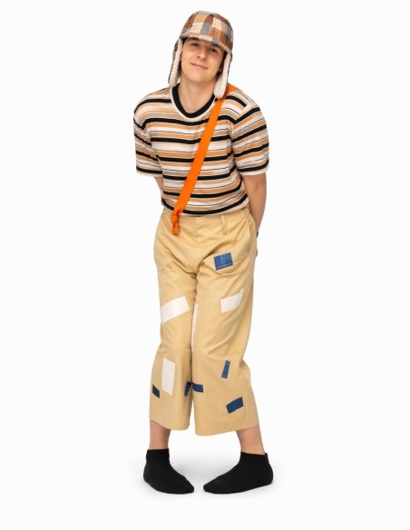 C'est une proposition amusante et reconnaissable, parfaite pour les fêtes à thème, le Carnaval et les événements humoristiques. Elle comprend un t-shirt à rayures fabriqué dans un doux tricot de machine, confortable et léger pour une utilisation prolongée. Le pantalon, fabriqué en polyester dense, intègre des élastiques sur les côtés de la taille pour un ajustement pratique et adaptable, offrant confort sans sacrifier le style caractéristique de l'ensemble. Il est complété par des bretelles assorties dans le même matériau. La casquette, en tissu effet drap, est dotée d'une visière renforcée et d'oreillettes avec un intérieur en doux mouton, offrant une finition soignée et une touche distinctive. Taille unique L, conçue pour s'adapter confortablement des tailles 50 à 54. Un costume résistant, confortable et plein de personnalité, idéal pour se démarquer avec un look classique et décontracté.