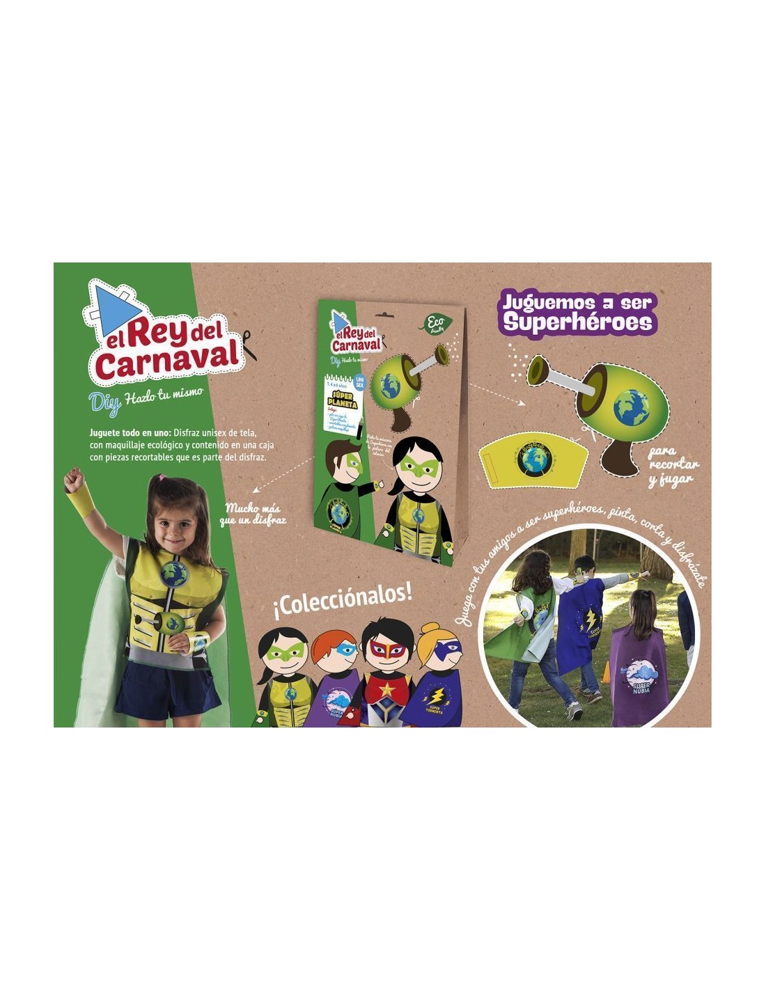 Ensemble de bricolage et déguisement enfant DIY de la Terre, recommandé pour les 4 à 6 ans. Il comprend un tablier avec une cape attachée par des pièces de velcro sur les épaules et se fermant par un laçage dans le dos. Fabriqué en tissu doux, dense et résistant, décoré d'un joli et attrayant design numérique à la fois sur le tablier et la cape, très confortable à porter. L'enveloppe écologique contient les accessoires découpables que les enfants pourront assembler pour compléter la caractérisation. De plus, à l'intérieur, vous trouverez un bâton de maquillage pour se peindre le visage et apporter la touche finale. Un jouet 3 en 1 : bricolage, déguisement et amusement, idéal pour le Carnaval, les fêtes scolaires, les anniversaires ou les jeux à la maison. Apprendre et s'amuser n'a jamais été aussi facile !