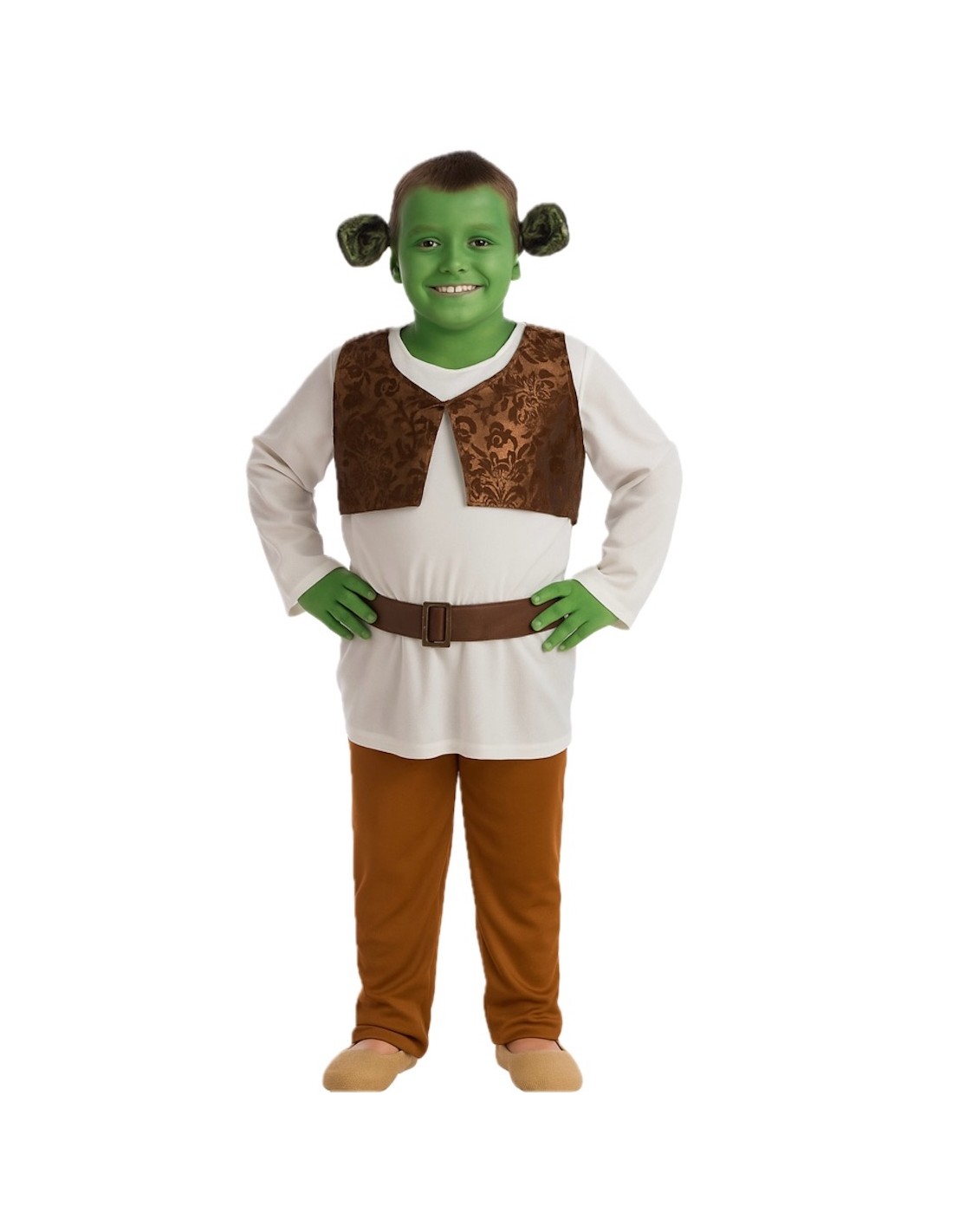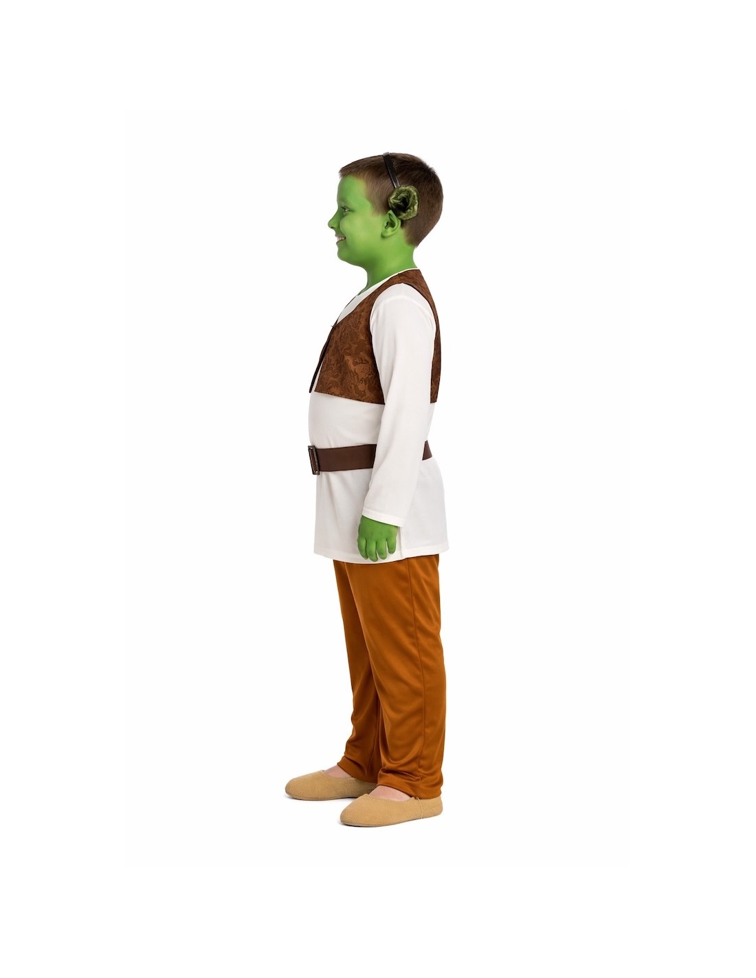 Costume amusant, idéal pour te transformer en l'ogre le plus célèbre de tous. Il comprend un t-shirt en toucher peau de pêche avec gilet en satin et velours imprimé, incorporé sur le t-shirt, qui comporte un rembourrage au niveau du ventre pour un effet réaliste. La fermeture se fait par velcro au niveau du cou. Le pantalon est confectionné en doux tissu semi-élastique avec une taille élastique, assurant ainsi son confort. Il est complété par une ceinture en polyester aspect cuir avec une boucle en plastique similaire au métal. Enfin, il comprend un serre-tête avec des oreilles en velours mousse pour maintenir leur forme parfaite.