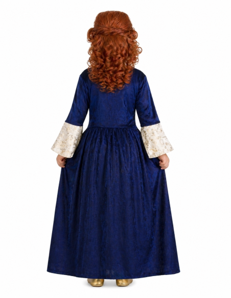 Les deux pièces sont fabriquées en velours bleu nuit doux, combiné à un polyester imitant l'aspect raffiné du brocart. Les détails de passementerie dorée rehaussent le design, apportant une touche distinguée et noble. Un costume de grande qualité, idéal pour des reconstitutions historiques, des fêtes à thème ou des événements médiévaux où l'élégance est à l'honneur.