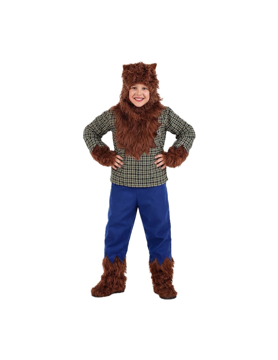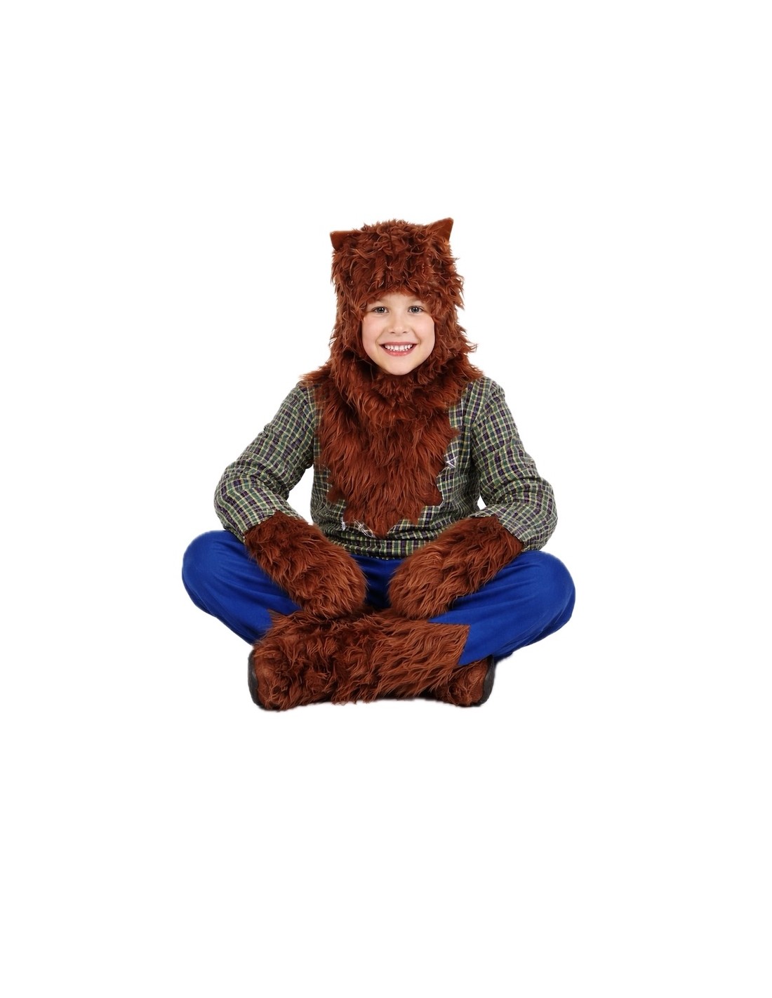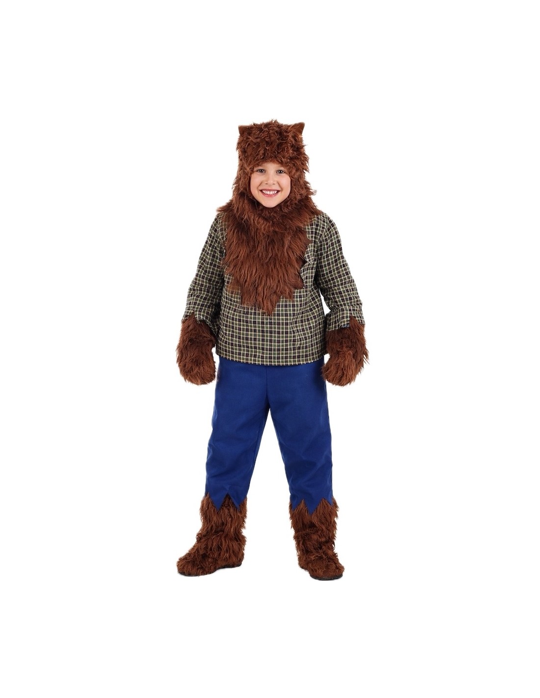 Ce costume classique comprend une chemise longue et ample fabriquée en polyester avec une apparence similaire à la flanelle. La fermeture au cou se fait à l'arrière avec du velcro. Les manches intègrent des mitaines tricotées en point de maille et en poil synthétique, tout comme la poitrine et la combinaison qui composent le costume. La partie inférieure se compose d'un pantalon avec une ceinture élastique et une petite poche intérieure. Il est fabriqué en polyester dense avec du poil synthétique couvrant les mollets et les pieds, fini avec un élastique pour un meilleur ajustement et confort.
