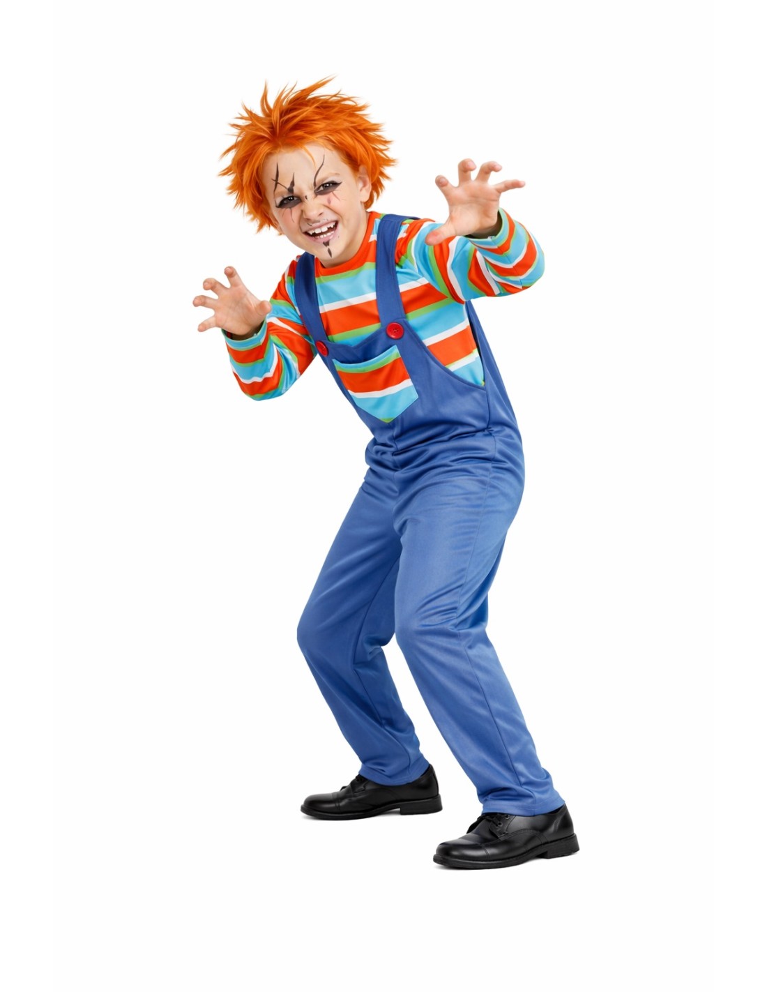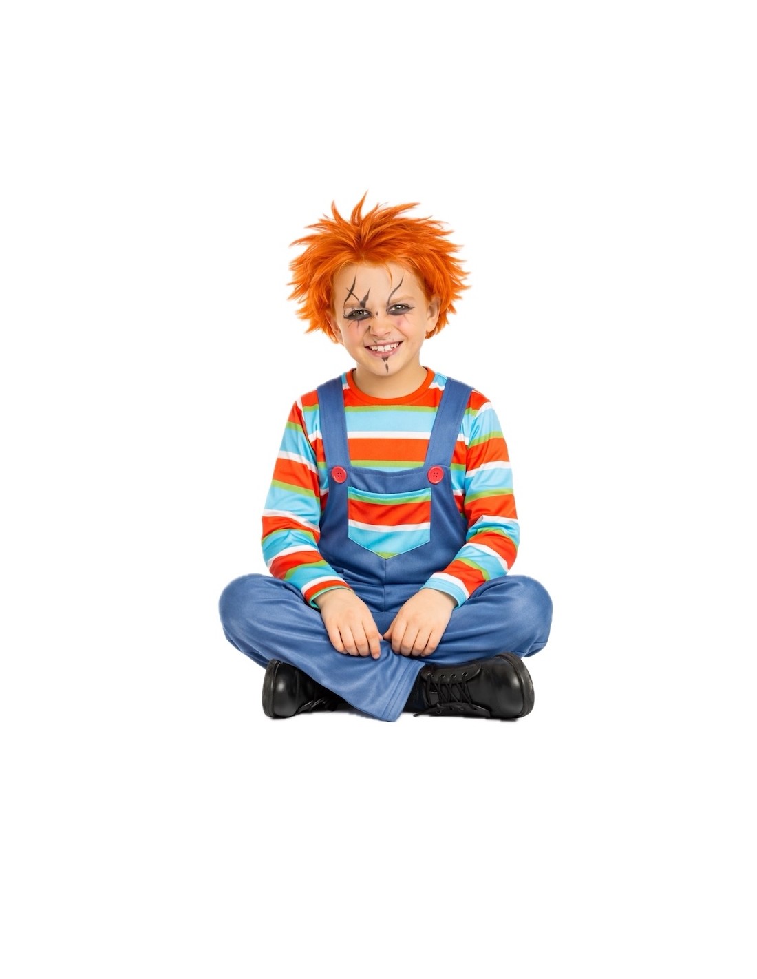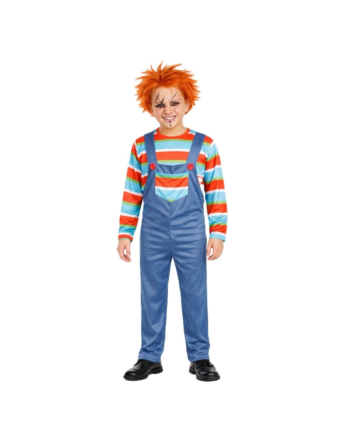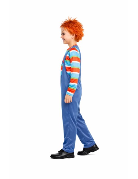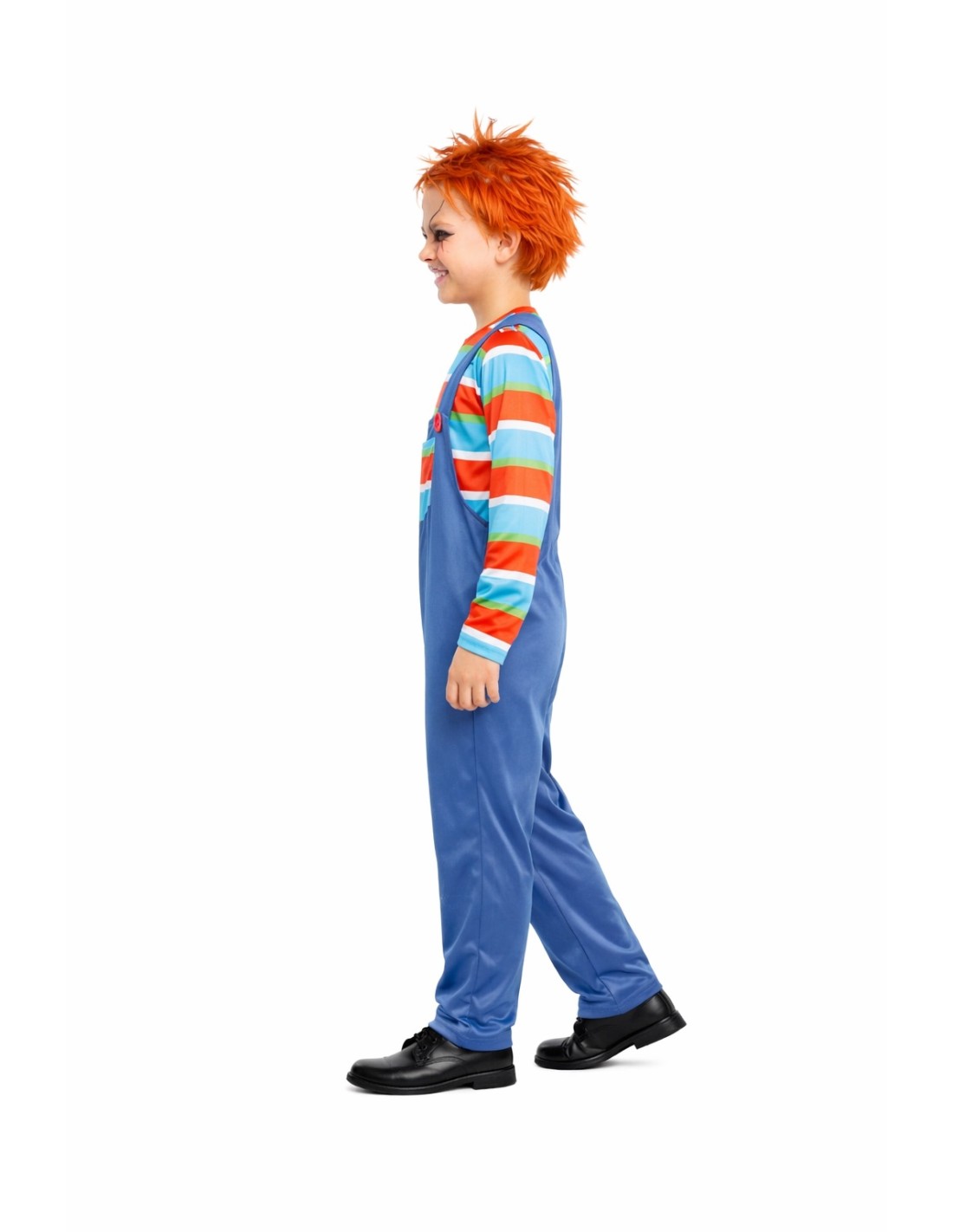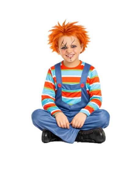Déguisement terrifiantement amusant de Poupée Démoniaque, composé d'un t-shirt à rayures en maille douce semi-extensible et d'un pantalon avec salopette dans le même tissu. La salopette comprend une braguette avec fermeture éclair invisible pour plus de confort, une poche fonctionnelle à l'avant et de grands boutons décoratifs. Les bretelles s'ajustent à l'arrière avec un pratique système de velcro. Léger et confortable, avec des finitions soignées pour un look saisissant.