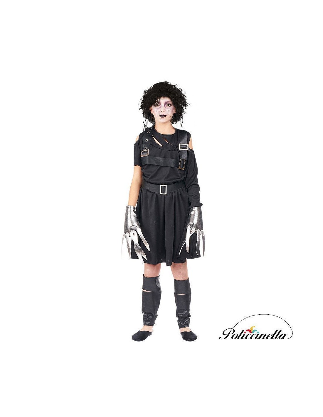 Ce costume se distingue par son originalité et sa confection soignée de grande qualité. La robe, en maille semi-élastique, présente une coupe à la taille et une jupe à l'ourlet doux, fermée dans le dos avec une fermeture éclair invisible. L'avant est décoré de bandes de TNT qui simulent des lanières et des œillets, accompagnées de boucles en plastique reproduisant le brillant métallique avec réalisme. L'ensemble comprend une ceinture assortie et des gants sans doigts dans le même tissu. Le joyau du costume est ses iconiques mains-ciseaux, fabriquées en polyester argenté sur une base en mousse en forme de gant, légères et confortables ! Un costume léger, résistant et surprenant, idéal pour le Carnaval ou les fêtes à thème où la fantaisie prend vie.