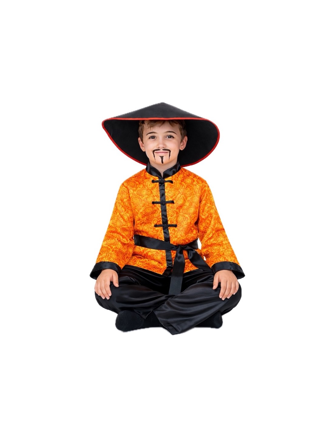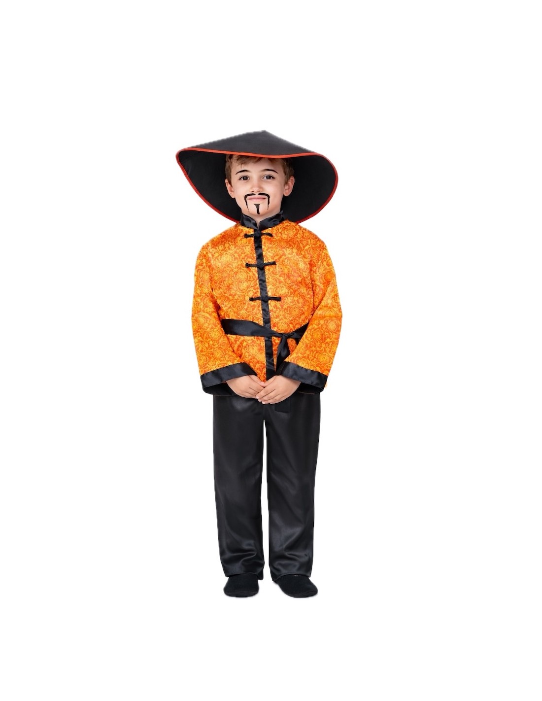 Ensemble inspiré du classique costume chinois, composé d'une chemise en satin doux avec un design de type tangzhuang, imitant la fermeture typique et le col mao. Elle se ferme confortablement avec du velcro à l'arrière du col. Le pantalon, confectionné dans le même matériau, possède une taille élastique et une petite poche intérieure. L'ensemble est complété par le chapeau chinois traditionnel, rembourré et équipé d'un bandeau intérieur pour assurer un ajustement ferme, confortable et éviter qu'il ne tombe. Enfin, il comprend une ceinture en satin, de la même couleur que le pantalon. Authentique et plein de charme oriental !