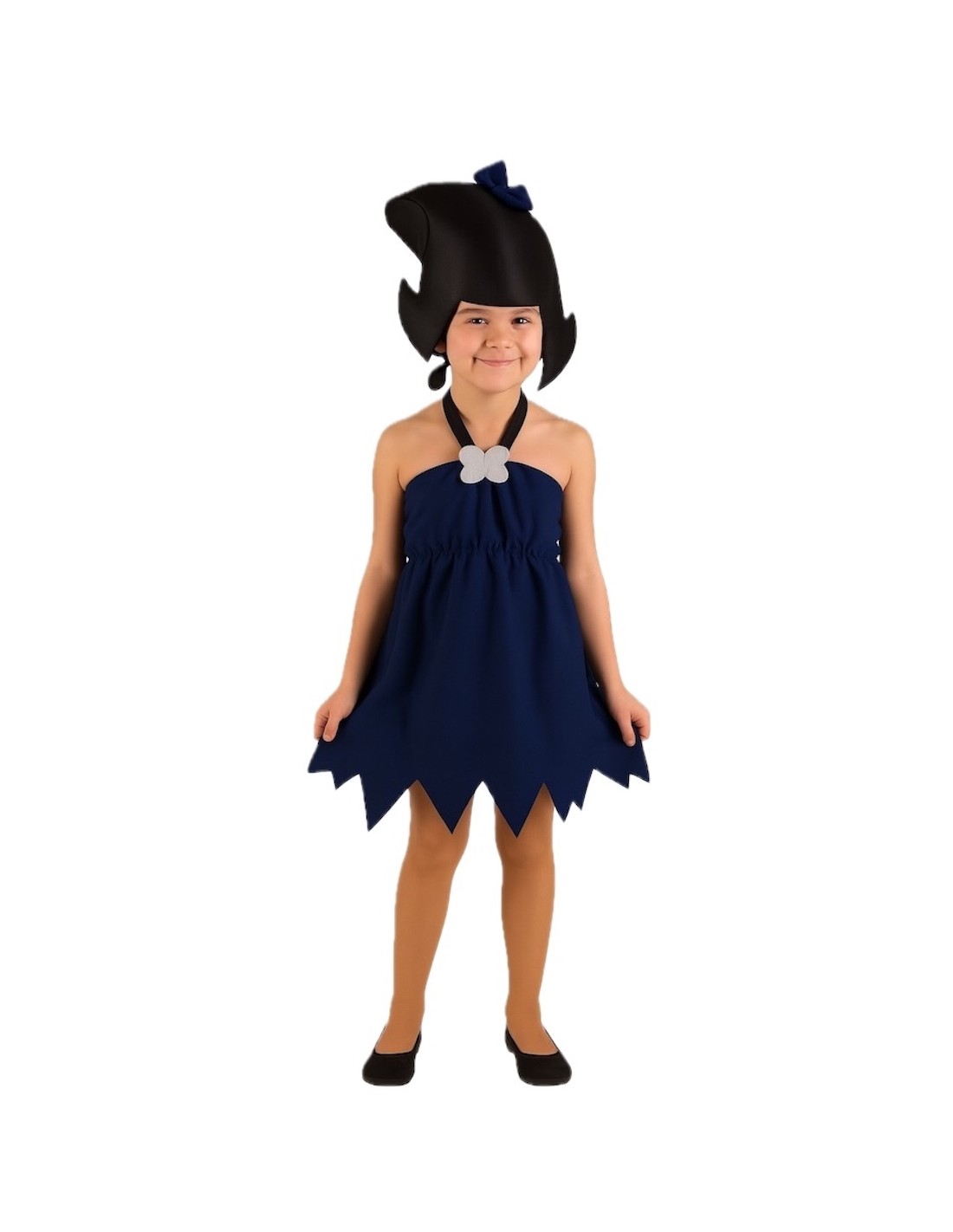 Ce déguisement de troglodyte allie confort, qualité et une touche sauvage pleine de charme. La robe, confectionnée en polyester dense au toucher pêche, présente une coupe évasée avec un élastique sous la poitrine qui apporte du volume et un ajustement parfait. Du buste part une bande de type halter qui se fixe confortablement autour du cou avec du velcro, mettant en valeur la silhouette avec une finition pratique et élégante. Le joyau du déguisement est son original bonnet-perruque, fabriqué en satin mousse pour maintenir sa forme intacte, avec un élastique à l'arrière de la nuque assurant une tenue idéale. Décoré d'un nœud du même tissu que la robe, il apporte cohésion et style à l'ensemble. Un déguisement résistant, confortable et créatif, parfait pour vivre des aventures préhistoriques au Carnaval ou lors de fêtes à thème.