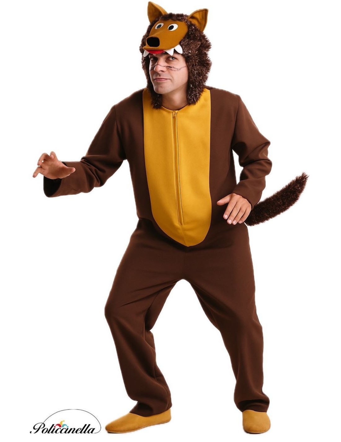 Cette combinaison intégrale à capuche, inspirée de la figure d'un loup, est fabriquée en polyester résistant et dispose d'une fermeture à glissière à l'avant. La capuche, intégrée à la combinaison, présente au centre du velours avec des appliques d'un filtre solide, tandis que les côtés sont recouverts d'une douce fourrure bouclée du même matériau, tout comme la queue du déguisement.