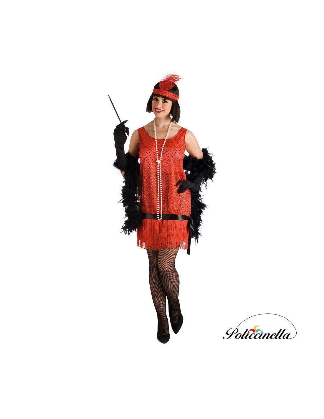 Ce magnifique costume, confectionné en doux tricot machine avec des sequins incrustés, se compose d'une robe à encolure ronde. La jupe est ornée à l'avant de franges à deux hauteurs. La robe comporte également un nœud noir en satin cousu sur un côté, permettant de le nouer en un nœud. L'ensemble est complété par un turban assorti, décoré d'une plume et avec un élastique à l'arrière pour mieux s'adapter à la tête.