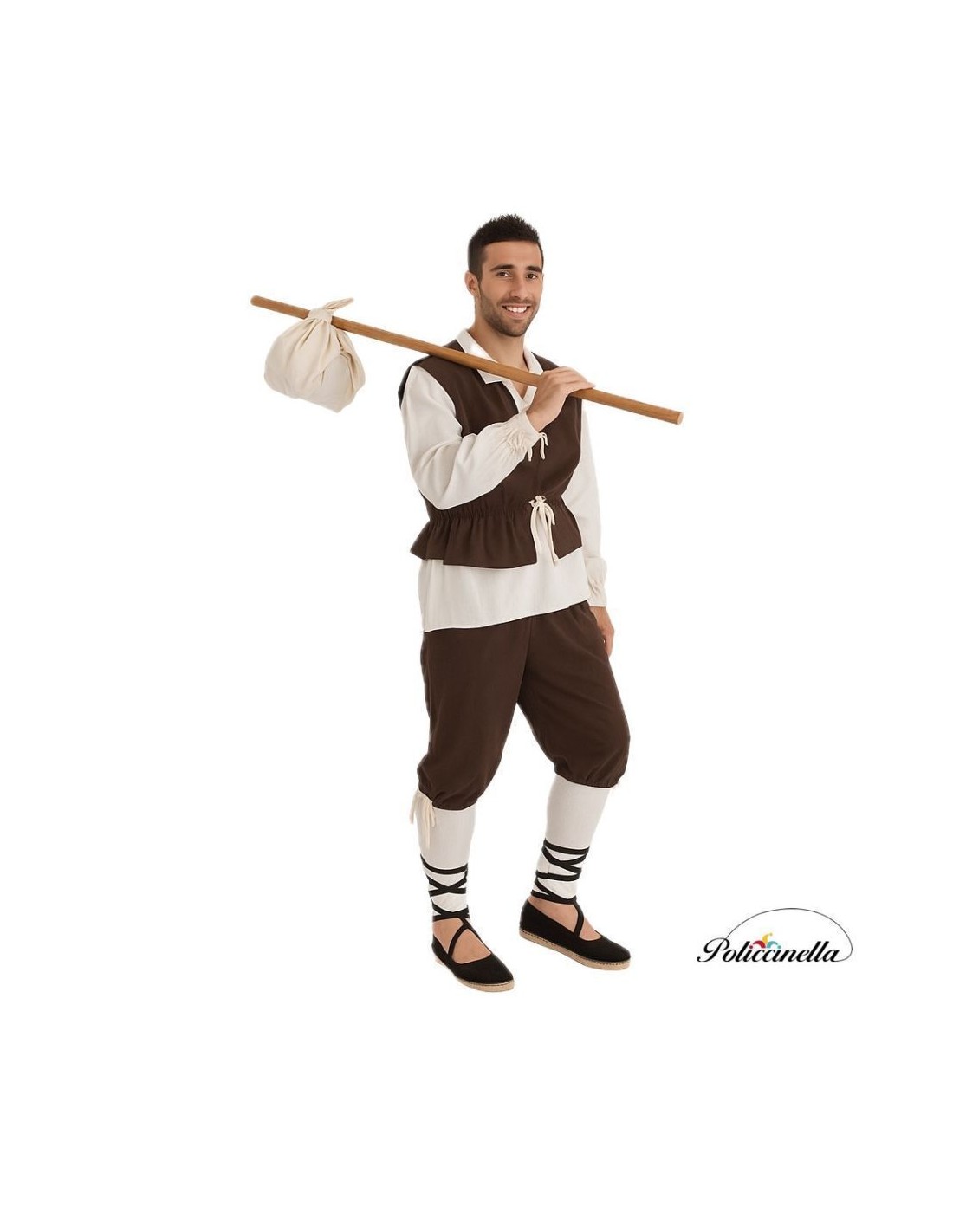 Ce costume complet de bouffon médiéval se distingue par sa confection soignée et la fidélité de ses détails. La chemise, fabriquée en polyester dense mais doux, est ornée de cordons aux poignets qui permettent d'ajuster les manches, évoquant le style de l'époque. Le gilet, confectionné dans un tissu au toucher velouté, se ferme à l'avant avec un cordon et comporte de l'élastique à la taille, créant un effet bouffant attrayant. Le pantalon, assorti au gilet, a de l'élastique à la taille et des cordons au niveau des genoux, comme le prescrivait la mode médiévale. L'ensemble est complété par des protège-tibias qui descendent jusqu'aux chevilles, apportant une finition réaliste et distinguée. Un costume confortable, résistant et de grande qualité, idéal pour des reconstitutions, des fêtes à thème et des célébrations médiévales.