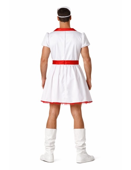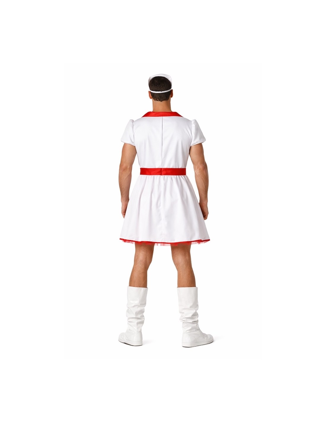 Cette robe, au design original, est fabriquée en polyester dense. Les manches ont de l'élastique et à la fois la poitrine et le col sont en satin. Ce dernier comporte un rabat qui lui confère structure et rigidité. La jupe est ornée et comporte un tulle cousu en forme d'anneau pour lui donner du volume. Le costume est complété par un tablier et un bonnet, ce dernier recouvert d'un filtre qui maintient sa structure et évite les déformations. Les deux pièces sont décorées d'une croix fabriquée dans un matériau similaire au cuir. L'ensemble est complété par des guêtres en polyester plastifié imitant l'effet verni.