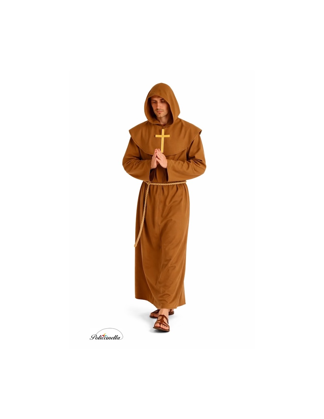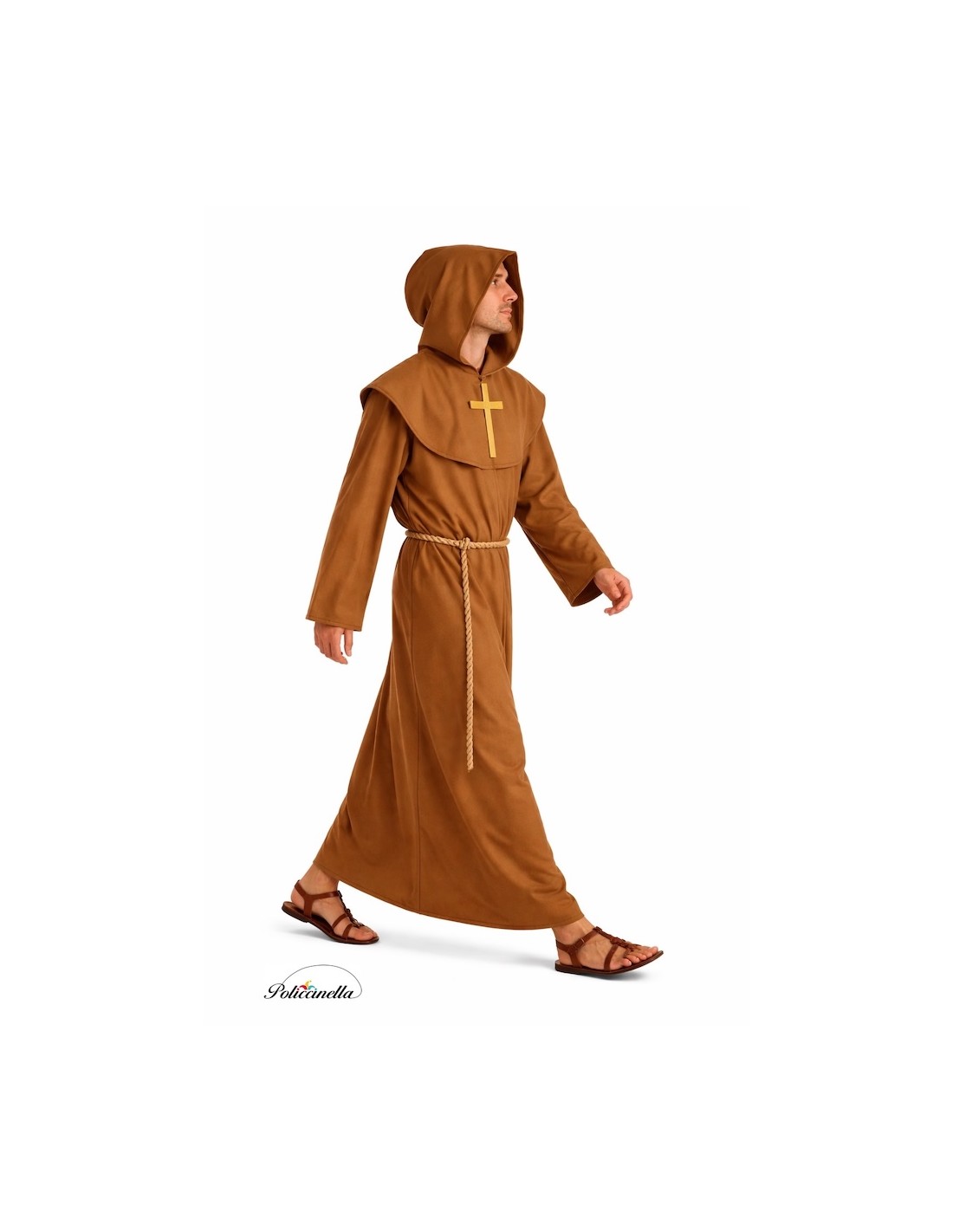 Cet habit monacal se compose d'une tunique qui se ferme au cou à l'arrière avec du velcro. Par-dessus, il y a une pièce centrale qui permet de ranger les mains, comme c'est habituel dans les habits monastiques. La capuche, avec un scapulaire, atteint les épaules et couvre à la fois l'avant et l'arrière. Il dispose également d'un cordon pour l'ajuster à la taille. L'ensemble est fabriqué en polyester doux au toucher peau de pêche.