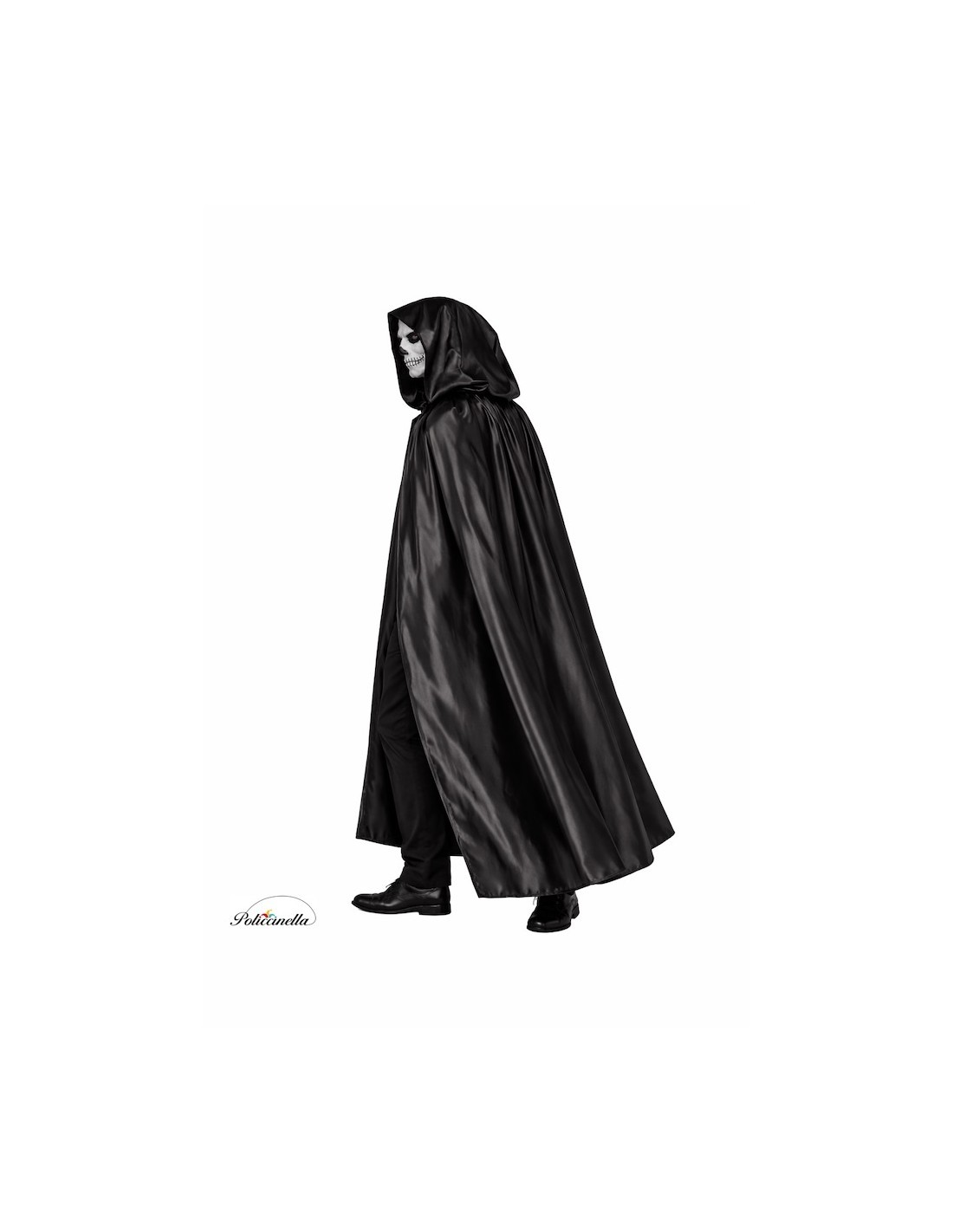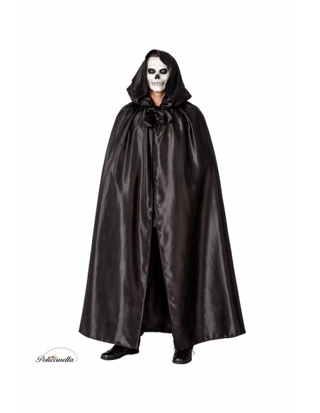 Manteau long avec capuche intégrée, fabriqué en satin dense à haute chute. Le col froncé avec un nœud fonctionnel apporte du volume et de la mise en valeur au design, améliorant le mouvement du vêtement. Comprend un masque assorti avec une bande élastique pour un ajustement confortable et sécurisé. La capuche est structurellement attachée au manteau, offrant une fermeture enveloppante et esthétique. Idéal comme accessoire pour les costumes d'époque, de fantaisie ou de personnages masqués.