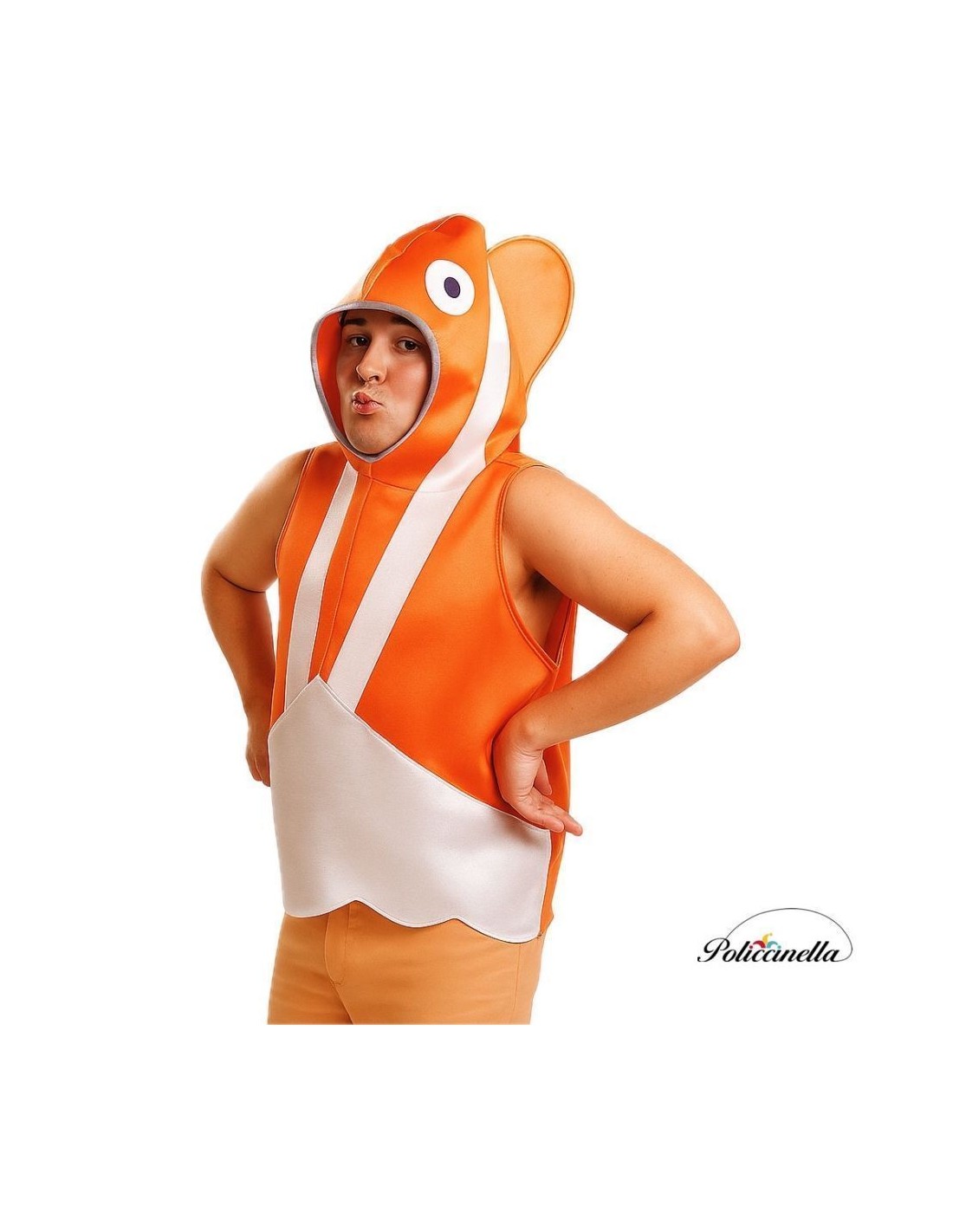 Amusant costume de poisson fabriqué en polyester expansé, qui apporte du volume et garde sa forme. Il comporte de grandes ouvertures latérales pour les bras et un dos en doux point de machine semi-élastique qui facilite les mouvements. Décoré d'yeux en feutre épais et d'une rayure blanche accrocheuse cousue sur les côtés ; ce déguisement est idéal pour les représentations scolaires, les carnavals ou les fêtes à thème. Léger, confortable et avec un design qui ne passe pas inaperçu !