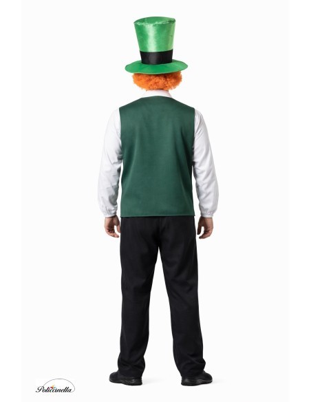 Costume amusant et confortable composé d'une chemise en polyester avec gilet intégré et fermeture velcro simulant deux pièces. Comprend un nœud papillon en satin avec élastique, un pantalon en maille douce à taille adaptable et le chapeau caractéristique représentant le personnage, fabriqué en satin mousseux et recouvert d'un filtre pour lui donner de la consistance et de la structure, évitant ainsi sa déformation, décoré avec des pièces de filtre.