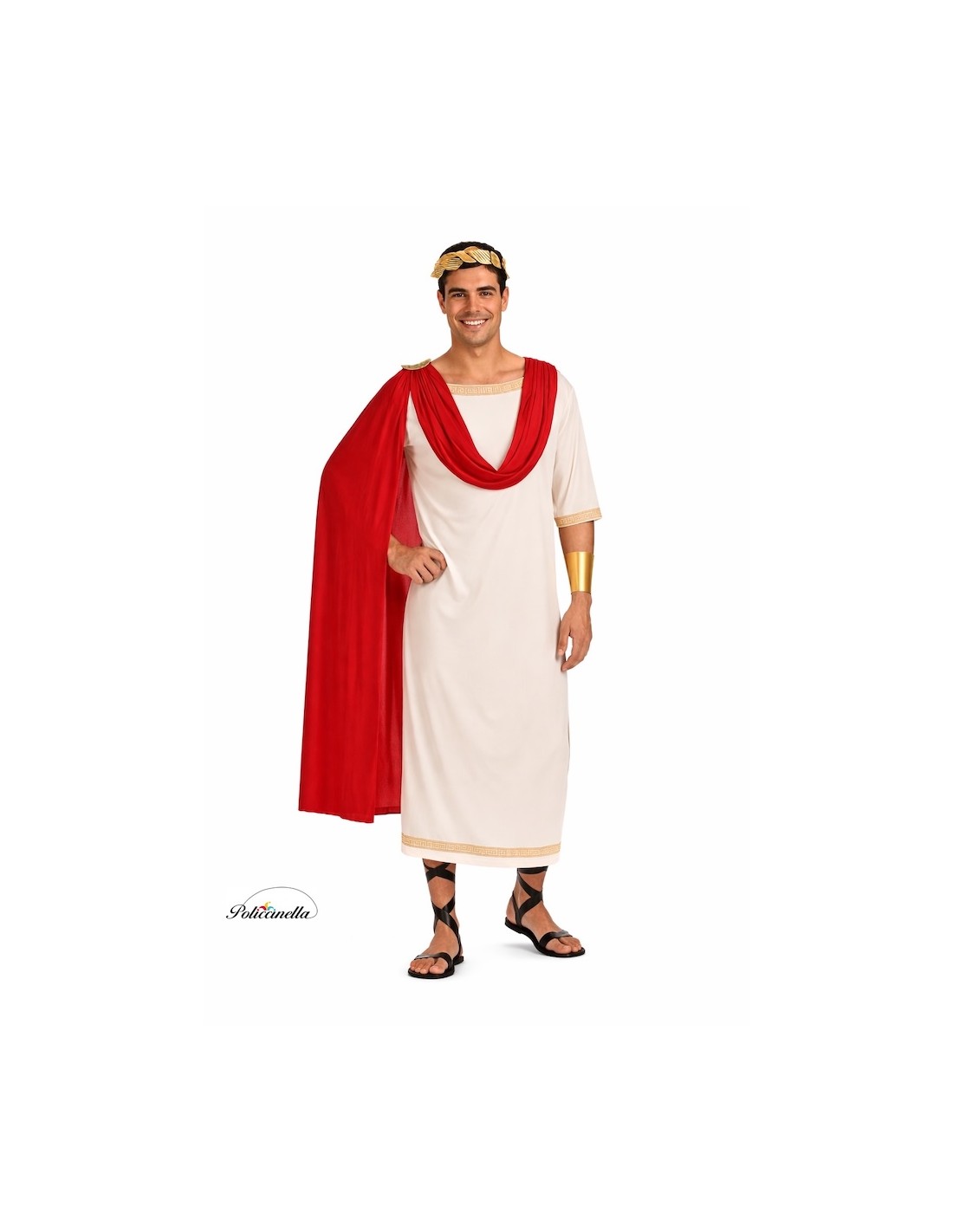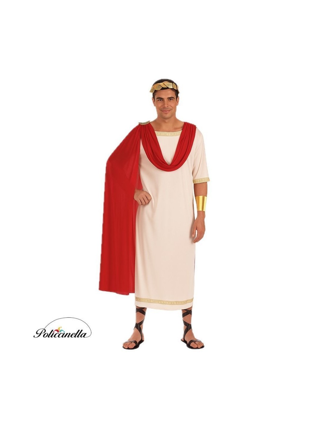 Tunique égyptienne de type kalasiris, fabriquée en tricot semi-élastique, avec fermeture à l'arrière du cou par velcro. Elle présente une décoration frontale avec une bande de motifs hiéroglyphiques, des épaulettes avec des appliques dorées en mousse, ornées de plaques ornementales. Le vêtement est complété par une cape intégrée sur les épaules, fabriquée dans le même tissu, attachée de manière structurée mais indépendante, ce qui apporte dimension et relief à l'ensemble.