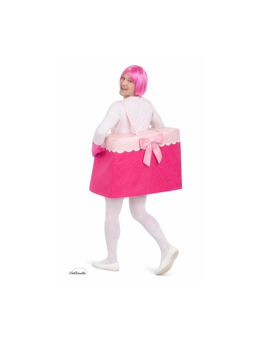 Costume amusant et original en forme de part de tarte en 3D, fabriqué en satin mousse qui maintient sa forme avec légèreté et confort. Il comporte une ouverture centrale, doublée en doux tricot machine, par laquelle le corps est introduit, ainsi que des bretelles frontales ajustables à l'arrière avec du velcro. Les lettres et dessins sont imprimés sur le tissu et ornés de petits pompons moelleux sur le devant pour une touche festive et sympathique.