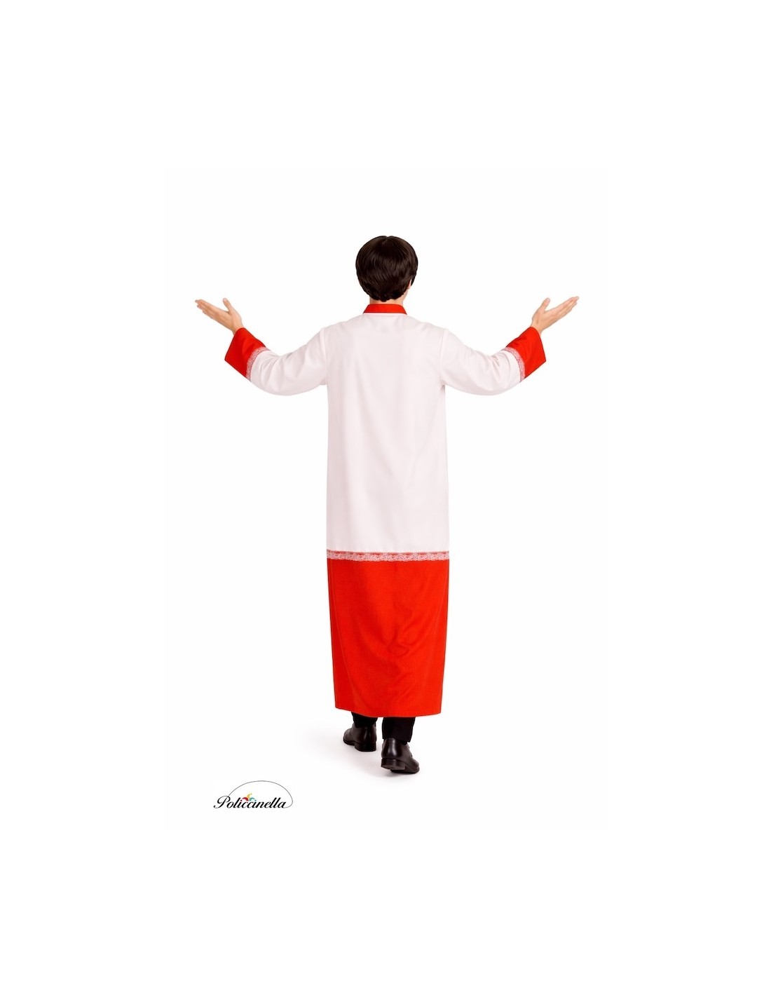Un classique d'un grand réalisme, confectionné dans un tissu doux et résistant pour un confort maximal pendant des heures. Bien que ce soit une seule pièce, il recrée parfaitement la tenue authentique : une longue tunique rouge simulant une soutane et une surplis blanc par-dessus. Le col est orné d'un nœud en satin rouge et le surplis est agrémenté de dentelles blanches sur les manches et le bas, offrant une finition soignée et très voyante. De coupe ample et légère, il offre une grande liberté de mouvement, avec un col rond et des manches larges qui mettent en valeur le style traditionnel. Les finitions et les coutures soignées facilitent son enfilage et son entretien. Pratique et polyvalent, il est idéal pour les carnavals, les fêtes à thème, les représentations et les événements populaires.