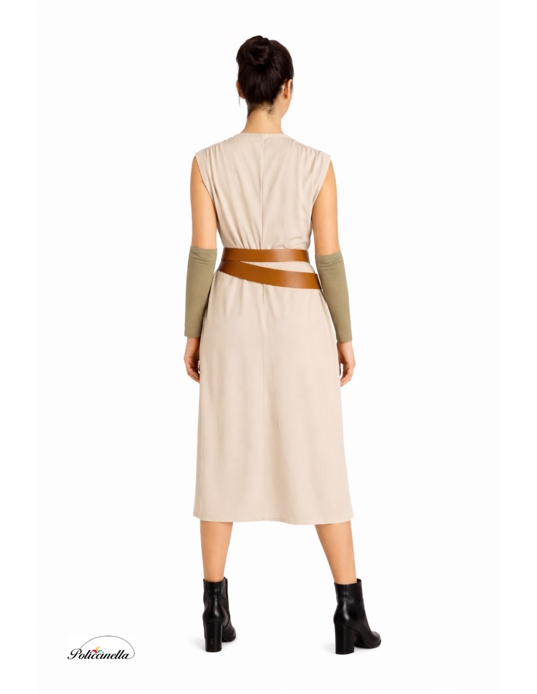 Un design inspiré par l'aventure spatiale, confectionné dans un doux tricot semi-élastique en machine à l'effet coton qui apporte confort et légèreté. Le t-shirt à col en V intègre deux pièces croisées sur le devant pour mettre en valeur la silhouette, maintenues par une ceinture en polyester avec une base en TNT qui apporte de la structure et se ferme dans le dos avec du velcro. L'ensemble comprend un pantalon assorti, avec une taille élastique, une poche intérieure et un élastique en bas pour un ajustement confortable au genou. Pour compléter la caractérisation, il est accompagné de protège-bras avec élastique au coude pour assurer une tenue parfaite. Un costume de grande confection, pratique et plein de détails évoquant la force et le style galactique.