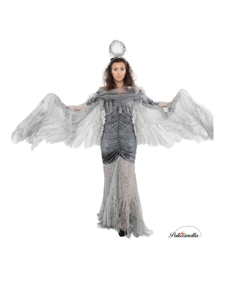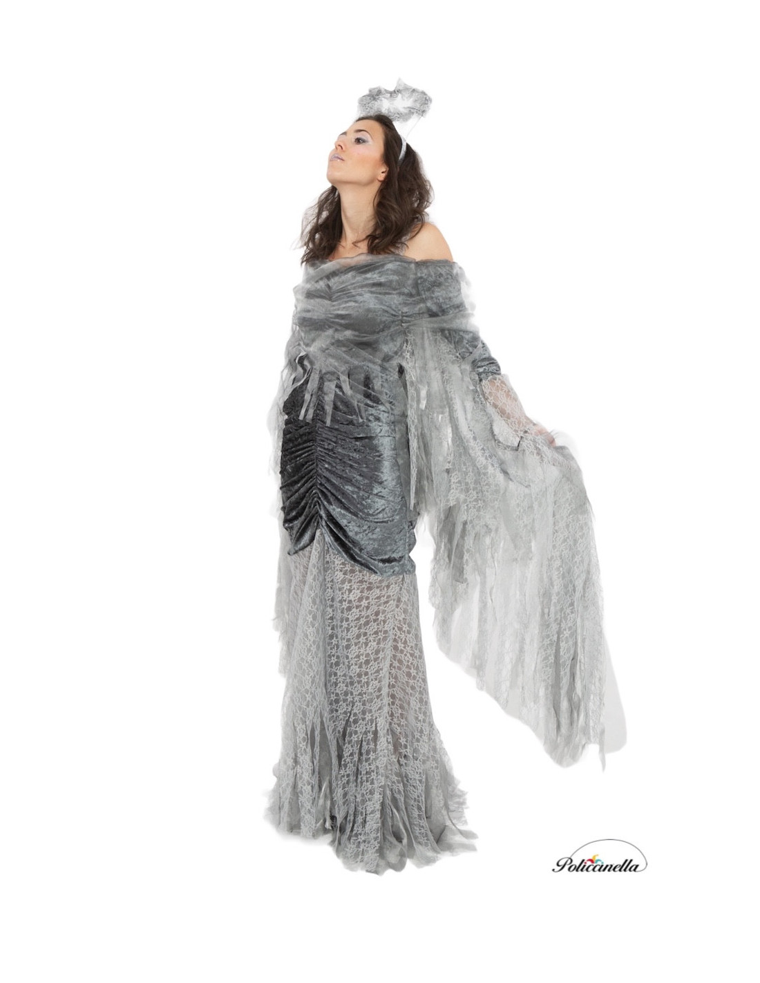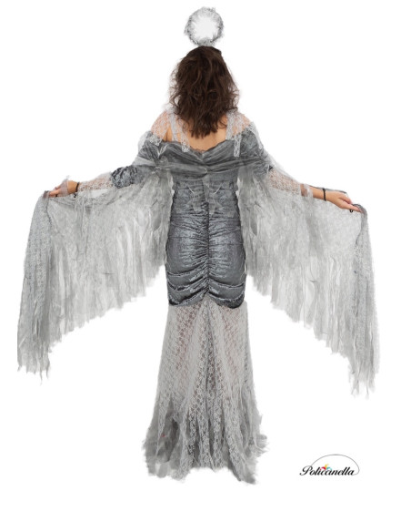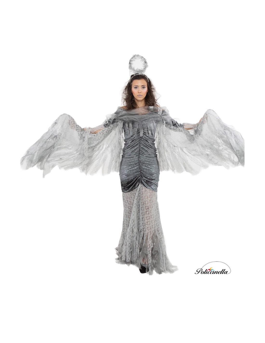 Enveloppé d'un halo de mystère, ce spectaculaire costume d'Ange Déchu allie élégance et caractère. Sa robe, en velours drapé et semi-élastique, s'adapte confortablement aux tailles 36 à 42, avec une fermeture éclair latérale et une poitrine renforcée pour un ajustement sûr. Une épaulette en mousseline réglable ajoute de la délicatesse, tandis que les ailes, cousues le long des bras et fixées avec un bracelet élastique au poignet et au doigt, accompagnent chaque mouvement sans effort. La jupe, aérienne et éthérée en dentelle et mousseline, offre légèreté et présence sans transparence, créant un ensemble saisissant et sophistiqué.