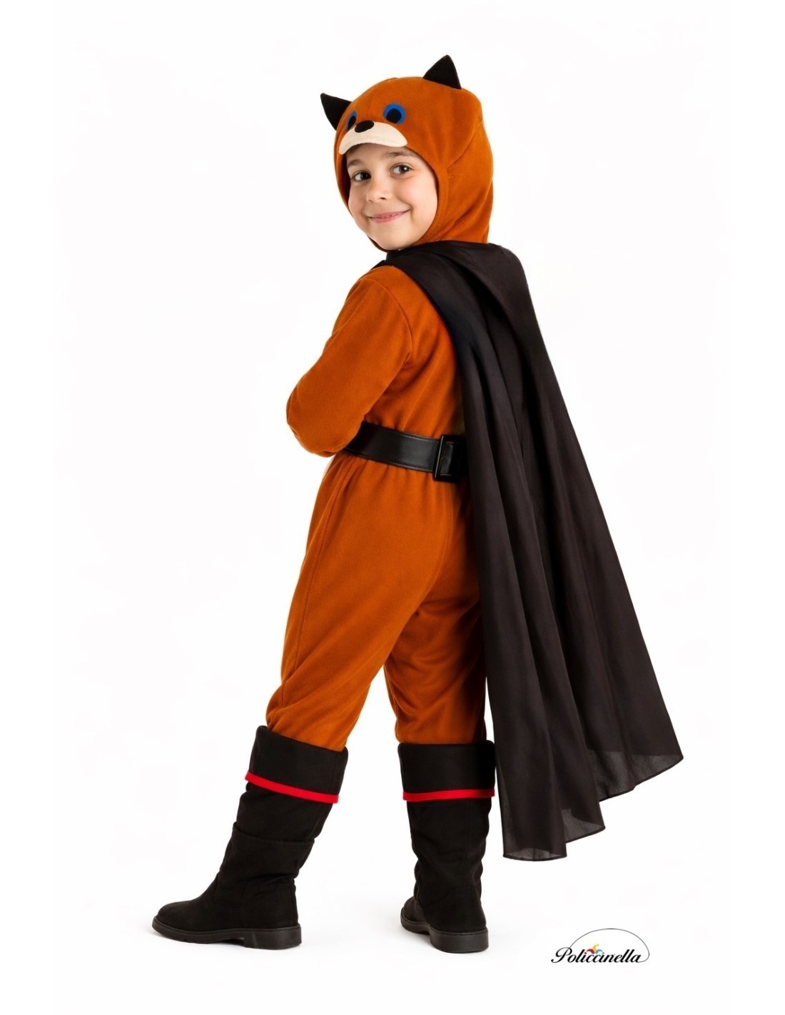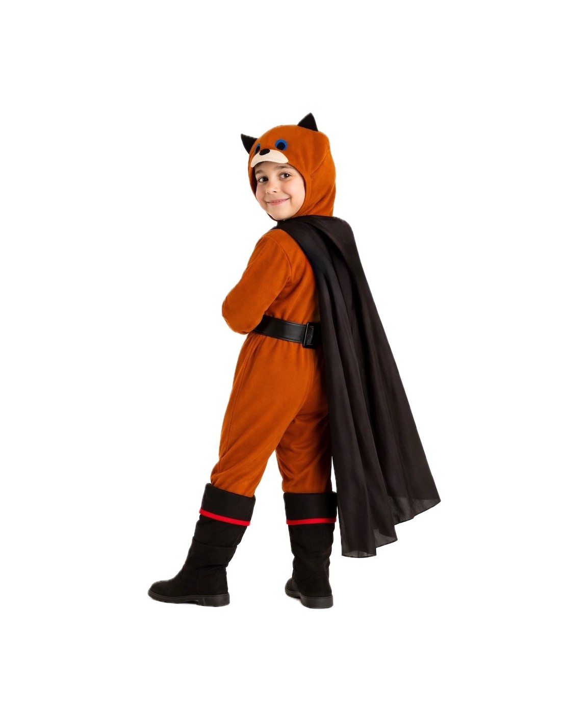 Un costume original et sympathique qui combine confort et réalisme. Il se compose d'une combinaison au toucher velouté avec fermeture éclair sur le devant et capuche intégrée, ajustée au visage grâce à des élastiques latéraux pour un bon ajustement. La capuche intègre des oreilles en mousse, qui ajoutent du volume en trois dimensions, ainsi que des yeux et un nez en tissu dense collés, donnant une finition expressive. Au niveau des chevilles, un élastique permet de fixer le vêtement à la semelle de la chaussure, évitant que le pantalon ne remonte pendant le mouvement. L'ensemble est complété par une ceinture en satin sur une base de TNT, avec une boucle dorée en plastique, et une cape en satin doux avec un ornement en mousse cousu à l'avant, qui se place en passant par la tête et se fixe au cou avec du velcro à l'arrière. Un costume confortable, amusant et plein de détails, idéal pour le Carnaval, les fêtes scolaires ou les représentations.