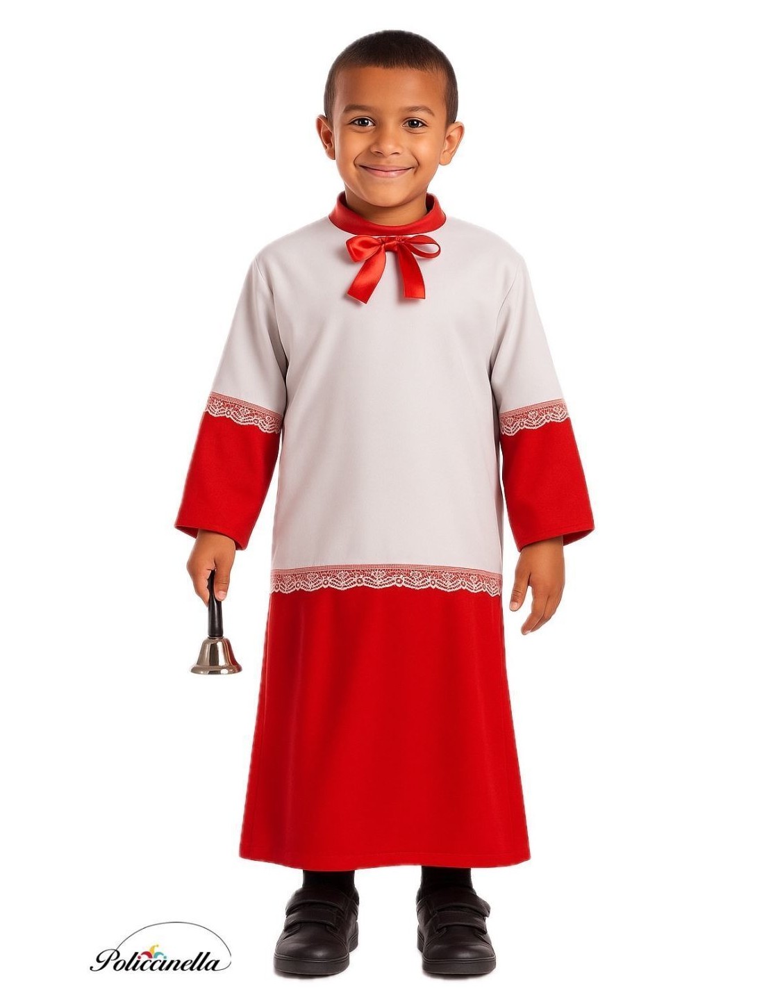 Un classique d'un grand réalisme, confectionné dans un tissu doux et résistant pour un confort maximal pendant des heures. Bien que ce soit une seule pièce, il recrée parfaitement la tenue authentique : une longue tunique rouge simulant une soutane et une surplis blanc par-dessus. Le col est orné d'un nœud en satin rouge et le surplis est agrémenté de dentelles blanches sur les manches et le bas, offrant une finition soignée et très voyante. De coupe ample et légère, il offre une grande liberté de mouvement, avec un col rond et des manches larges qui mettent en valeur le style traditionnel. Les finitions et les coutures soignées facilitent son enfilage et son entretien. Pratique et polyvalent, il est idéal pour les carnavals, les fêtes à thème, les représentations et les événements populaires.