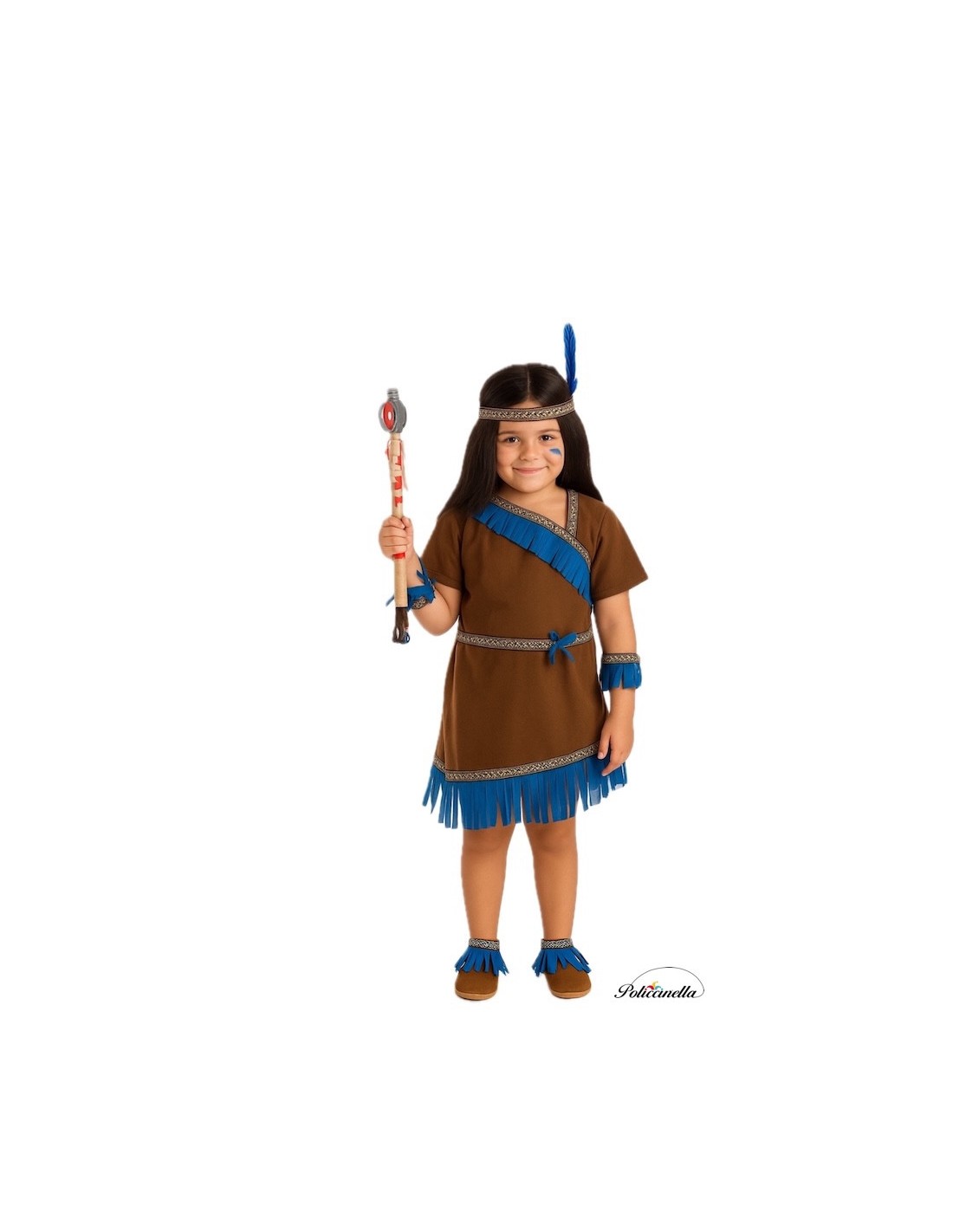 Ce déguisement d'indienne allie tradition et fantaisie avec une confection de grande qualité et des détails soignés. La robe, en polyester au toucher velouté, présente un décolleté croisé (sans ouverture), une taille élastique pour un ajustement confortable et une fermeture au cou avec du velcro. Elle est décorée de rubans aux motifs indigènes et de franges bleu électrique qui apportent de la couleur et de l'authenticité. Le bijou du déguisement réside dans ses accessoires : des manchettes et des chevillères élastiques assorties à la robe, ainsi qu'un bandeau orné de plumes pour compléter le look avec une touche tribale et festive. Un ensemble doux, résistant et voyant, idéal pour le Carnaval, les fêtes scolaires et les célébrations à thème pleines d'aventure.