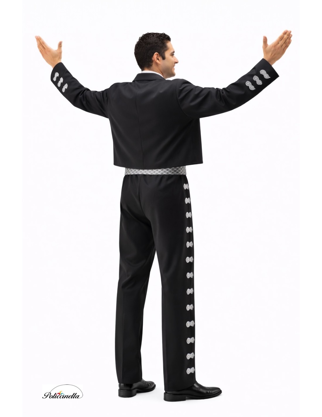 Abito composto da cinque pezzi: GIACCHETTA CORTA O BOLERO realizzata in poliestere robusto, con spalline e bottoni d'argento con asola di passamaneria; PANTALONE con elastico in vita, tasca interna e decorazioni laterali di passamaneria; CAMICIA senza maniche, realizzata in raso e chiusura al collo con gancetto; FAZIONE per il collo realizzato in raso; e per finire, una CINTURA realizzata in poliestere e rivestita con una rete argentea con chiusura posteriore tramite velcro.