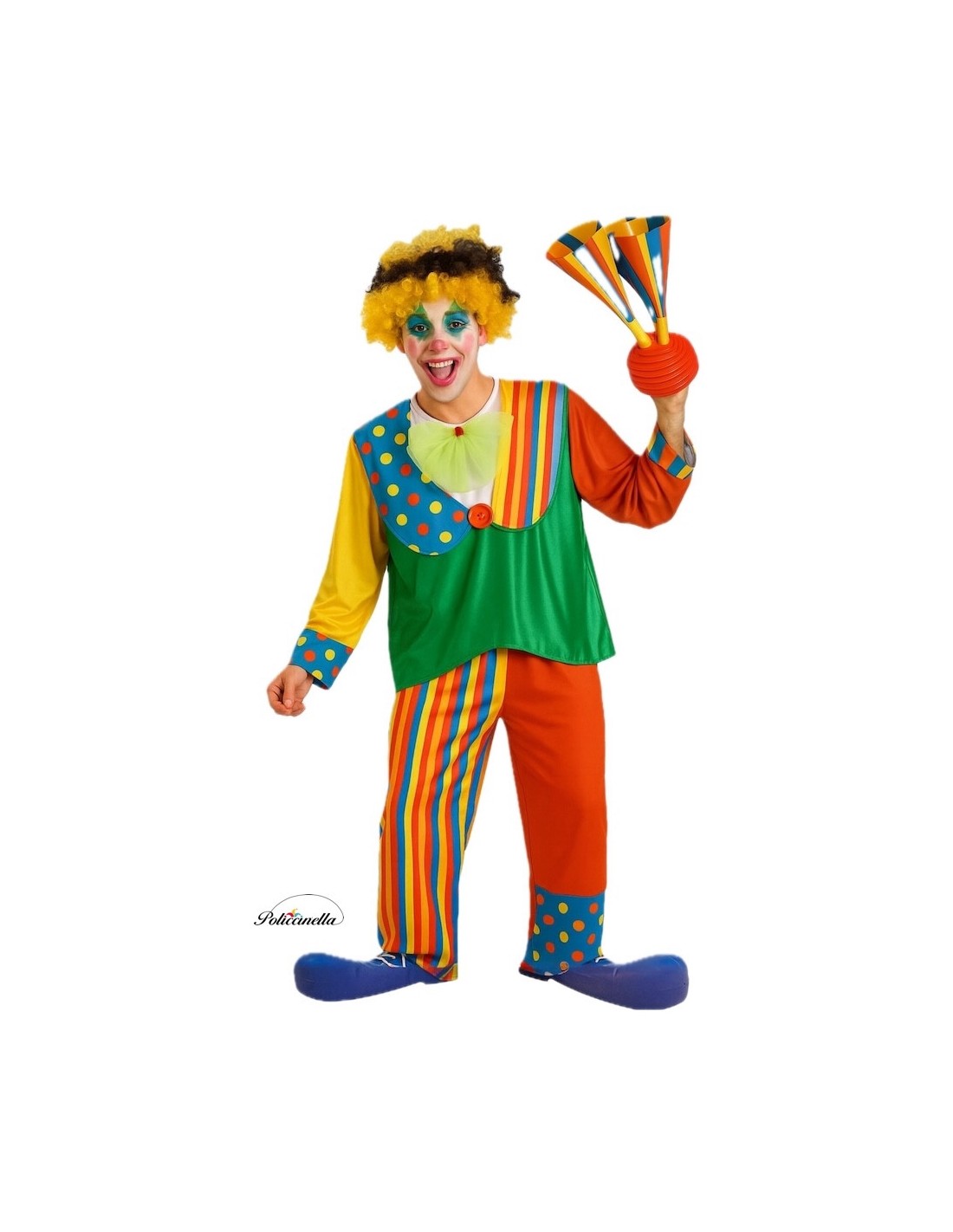 Divertente set composto da una camicia taglio levita in morbido punto semielastico, con chiusura a strappo sul collo. Include un vistoso bavaglino decorativo, grande bottone rosso cucito sul davanti e papillon di tulle verde limone per un tocco extra di simpatia. I pantaloni, realizzati nello stesso tessuto, presentano una comoda vita elasticizzata e pratiche tasche interne. Ideale per spettacoli, animazioni e feste.
