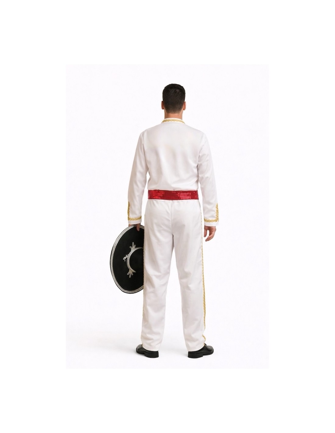 Set composto da due pezzi realizzato in morbido e denso poliestere, decorato con una sottile passamaneria dorata. La giacca ha la chiusura anteriore con velcro, collo alla Mao e papillon regolabile con velcro. Sul retro, una fascia elastica in vita garantisce una migliore vestibilità e forma, completata da un nastro rosso con paillettes per un tocco festivo. I pantaloni includono un'elastico in vita per una maggiore comodità. Ideale per presentazioni, feste a tema e celebrazioni tradizionali.