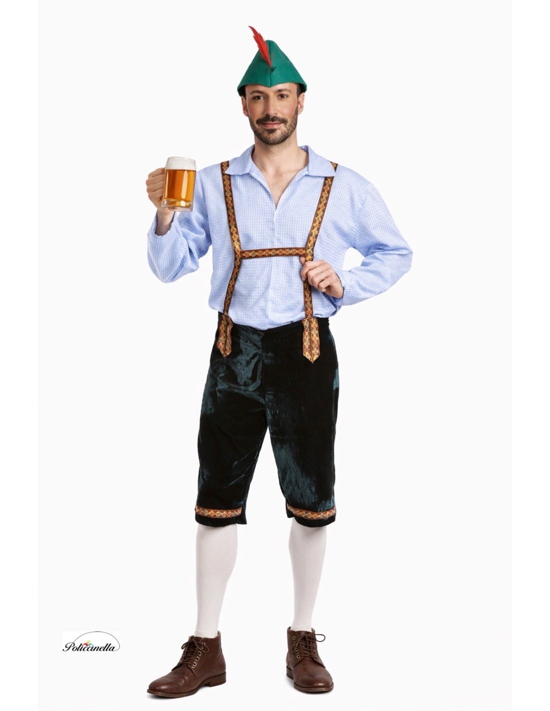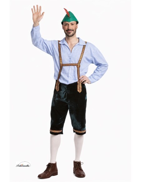 Questo abito tradizionale è composto da una camicia lunga realizzata in poliestere denso, pantaloni in velluto morbido con bretelle realizzate con un nastro decorativo dai motivi colorati, lo stesso utilizzato per decorare il fondo dei pantaloni nella parte anteriore, e il caratteristico cappello che rappresenta il personaggio, realizzato in tessuto denso e un robusto filtro per conservare la sua struttura e forma. Questo cappello è decorato con una piuma laterale.