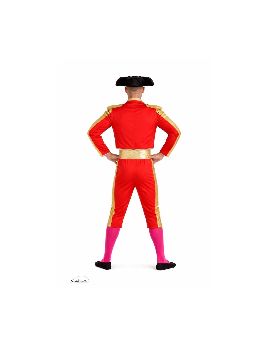 Risplendi con l'eleganza e il valore dell'arena! Classico vestito da torero con giacca corta in morbido tessuto a maglia, decorata con stoffa dorata effetto broccato, passamanerie e spalline con frange. La giacca include la camicia per simulare un completo, con chiusura in velcro sul collo e un'altra parte per fissare la cravatta. I pantaloni abbinati condividono gli stessi materiali e dettagli. Include una cintura dorata regolabile e la tradizionale montera, con struttura interna per mantenere la sua forma. Perfetto per feste, sfilate o carnevali dal sapore spagnolo.