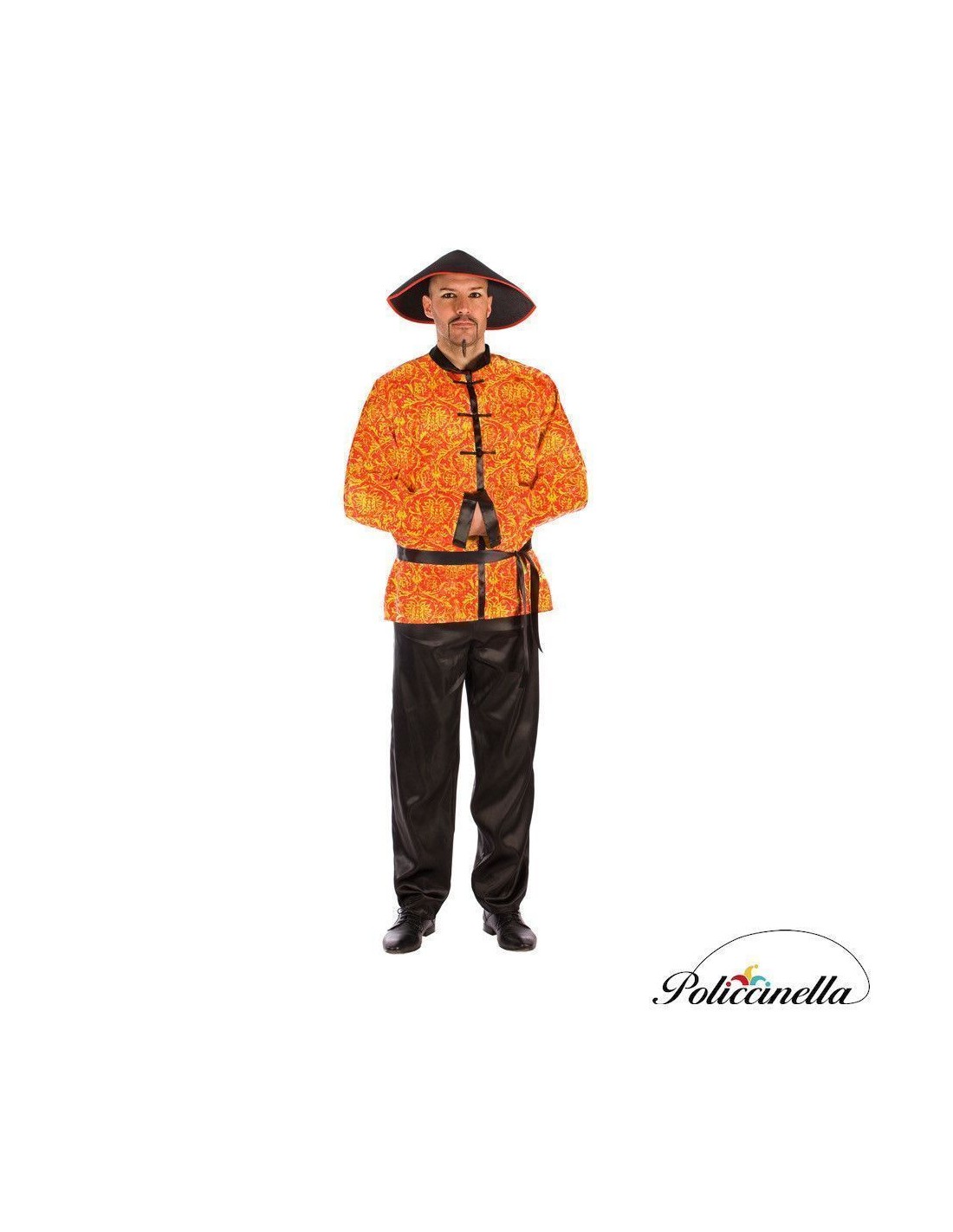 Insieme ispirato al classico abito cinese, composto da una camicia in morbido raso con design alla tangzhuang, simulando la tipica chiusura e il collo mao. Si adatta comodamente con velcro nella parte posteriore del collo. I pantaloni realizzati nello stesso materiale, hanno una vita elastica e una piccola tasca interna. L'insieme è completato dal tradizionale cappello cinese, foderato e dotato di una fascia interna per garantire una vestibilità stabile, comoda e per evitare che cada. Infine, include una cintura in raso dello stesso colore dei pantaloni. Autentico e pieno di fascino orientale!