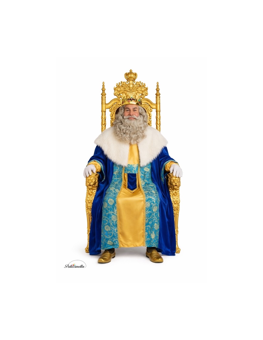 Sorprende come un vero Re Mago con questo lussuoso costume di alta qualità. Include un mantello di velluto morbido con collo in pelliccia sintetica, impreziosito da un davanti e delle maniche realizzati in un esquisito tessuto broccato tipo damasco e una delicata passamaneria dorata. La tunica di raso fluido, con comode polsini elastici e chiusura posteriore in velcro, conferisce un'aria regale ed elegante. Completano il look una spettacolare cintura in broccato e velluto con dettagli dorati, che si stringe con un fiocco. Ideale per sfilate, cortei e eventi indimenticabili. "La stampa del tessuto può variare leggermente rispetto a quella mostrata nella fotografia, mantenendo sempre la stessa qualità e stile."