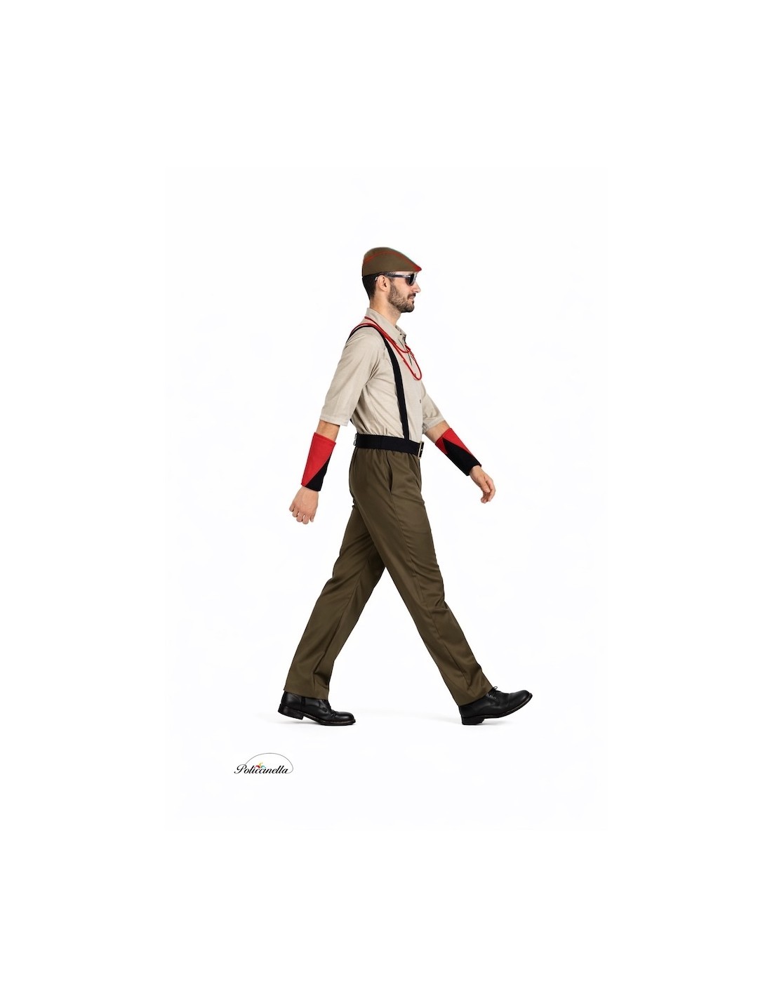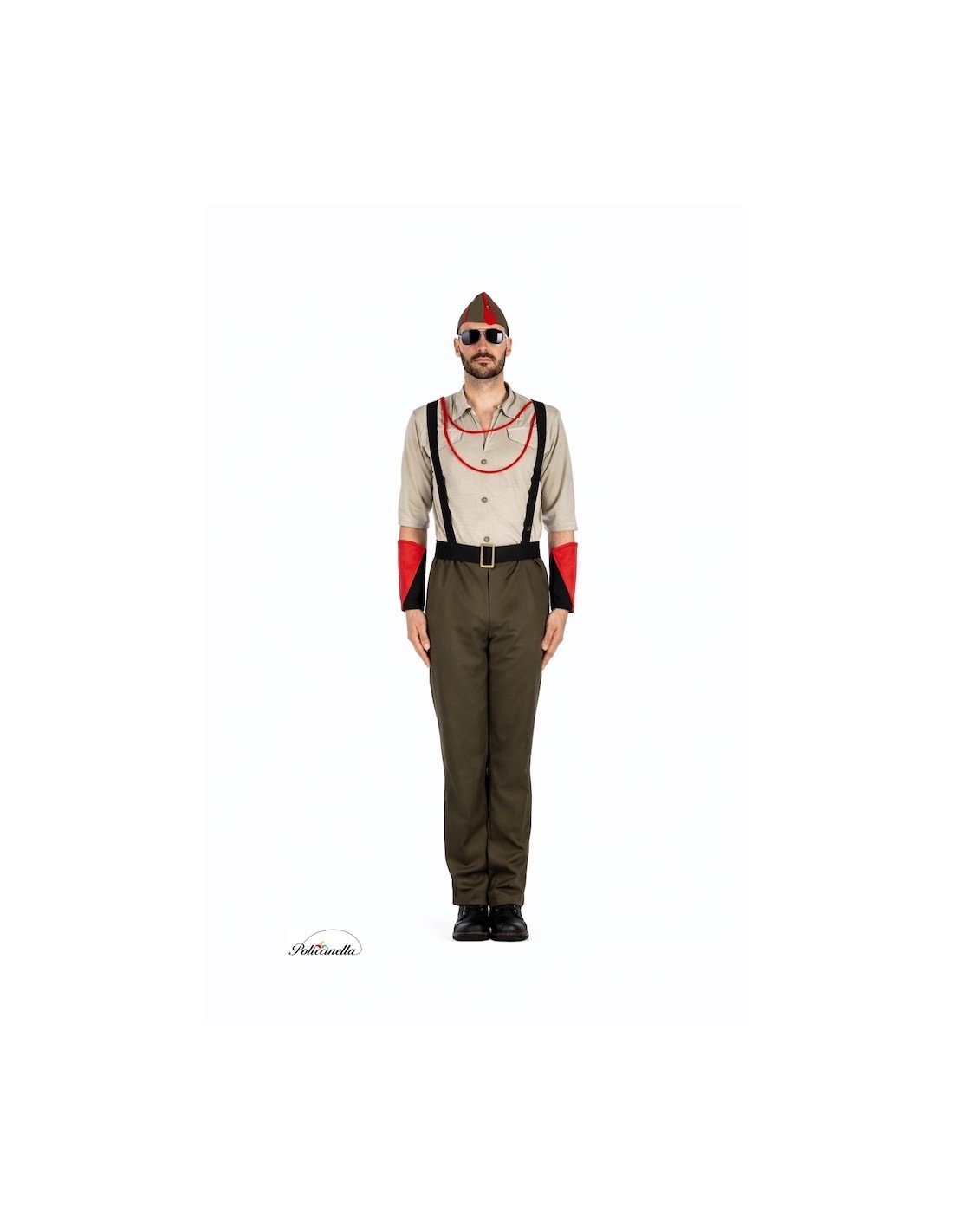 Questo costume, realizzato con un tessuto morbido simile al velluto, imita il caratteristico abbigliamento degli indigeni del West, che utilizzavano pelli di animali cacciati per crearlo. La giacca si chiude con del velcro nella parte posteriore del collo. Sopra di essa, è stato realizzato un petto con stampa animalier, decorato con frange e nastro...