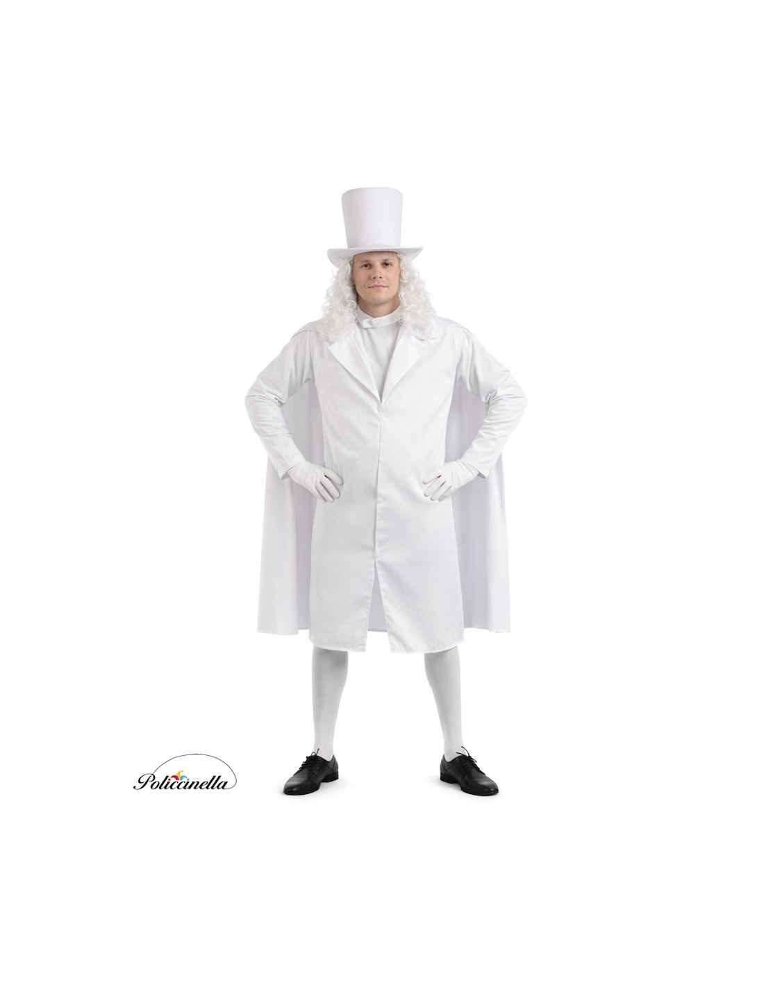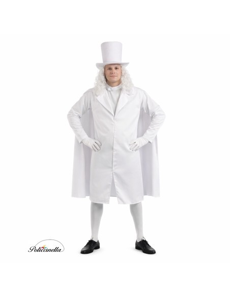 Un design spettrale con un'aria distintiva. Questo costume include un cappello a cilindro alto, realizzato in tessuto al tatto di pesca su una base di feltro rigido che mantiene la sua forma impeccabile. La giacca, dal taglio dritto e lungo, è realizzata in poliestere fitto e morbido che NON trasparenta, e incorpora un collo strutturato con schiuma, ampie revers e bottoni decorativi (non funzionali) sul davanti, realizzati in feltro attaccati al capo. Il mantello abbinato, anch'esso in poliestere ad alta densità, si adatta al collo con un pezzo frontale in feltro, completando un insieme elegante, comodo e pieno di mistero.