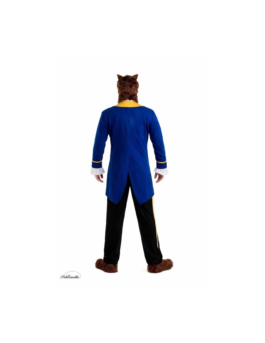 Maestoso costume, composto da una giacca tipo frac in morbido poliestere con revers e polsini in raso, chiusura frontale con velcro e applicazioni decorative dorate. Il retro include una striscia gialla e una lunga coda di peluche. I pantaloni semi-elasticizzati con elastico, tasca interna e bande laterali gialle si abbinano a copriscarpe in pelo sintetico. La falsa camicia in raso con pizzo e fiocco posteriore aggiunge un tocco distintivo. Si completa con una tuta di peluche con orecchie in raso. Perfetto per rivivere questo classico con stile e dettaglio.