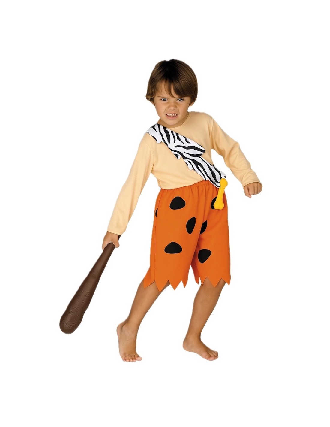 Viaggia all'Età della Pietra con questo completo e divertente costume! Include una maglietta beige in maglia semi-elastica con chiusura a strappo sul retro, comoda e facile da indossare. I pantaloni, realizzati in morbido poliestere, hanno un elastico in vita per una perfetta vestibilità. Da notare la striscia incrociata con stampa animalier che tiene il finto osso di plastica, emblema del personaggio, fissato da un pezzo di velcro sul retro della vita dei pantaloni. Ottimi dettagli e grande comfort per travestirsi con uno stile preistorico. Ideale per il Carnevale o feste a tema!