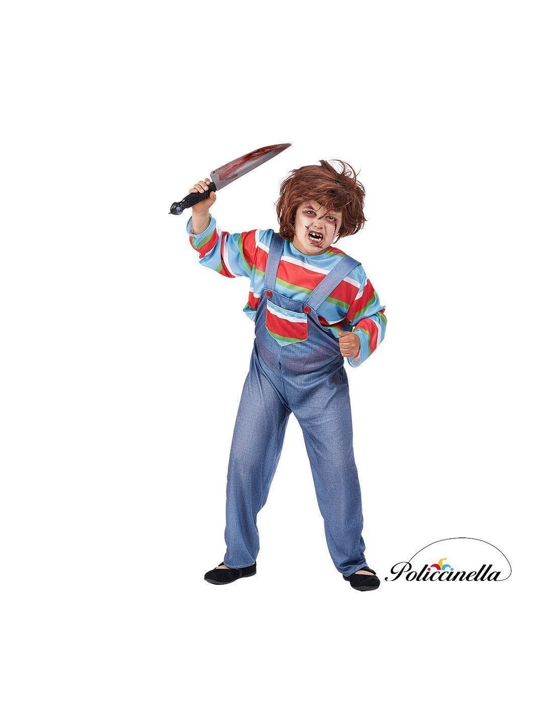 Un travestimento terrificante ma divertente del "Pupazzo Diabolico", composto da una maglietta a strisce in morbida maglia semielastica e pantaloni con pettorina dello stesso tessuto. La pettorina include una chiusura a zip invisibile per una maggiore comodità, una tasca funzionale sul davanti e grandi bottoni decorativi. Le bretelle si regolano dietro con un pratico sistema in velcro. Leggero e confortevole, con rifiniture curate per un look di impatto.
