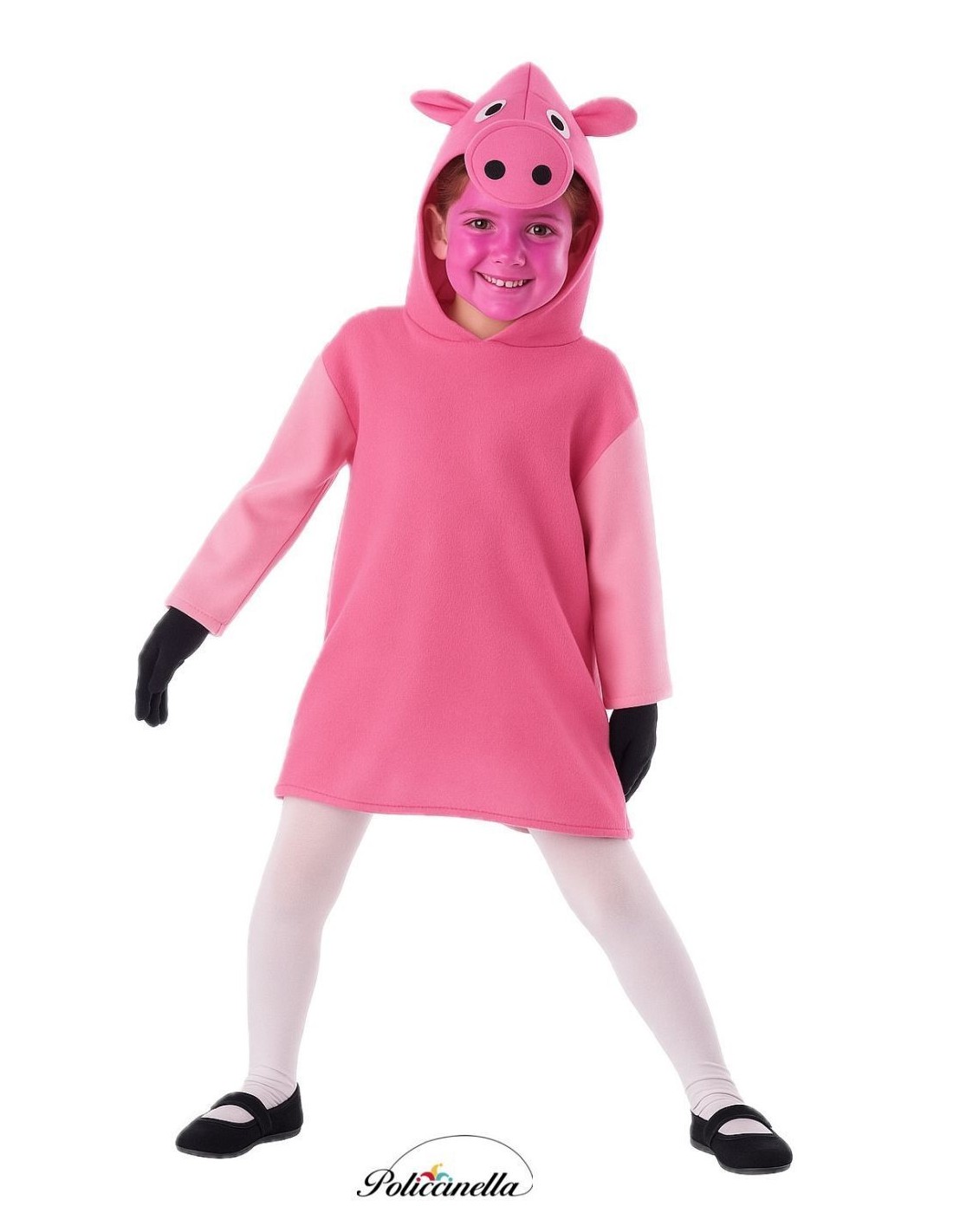 Bellissimo costume da maialina con abito realizzato in poliestere tipo peluche, super morbido e amorevole, con chiusura a strappo sul collo e cappuccio integrato. Il cappuccio, dello stesso materiale, è imbottito per mantenere la sua forma ed evitare deformazioni, decorato con occhi e naso in feltro fitto attaccati al tessuto. Leggero, comodo e molto caldo, ideale per godersi con stile e tenerezza in qualsiasi festa.