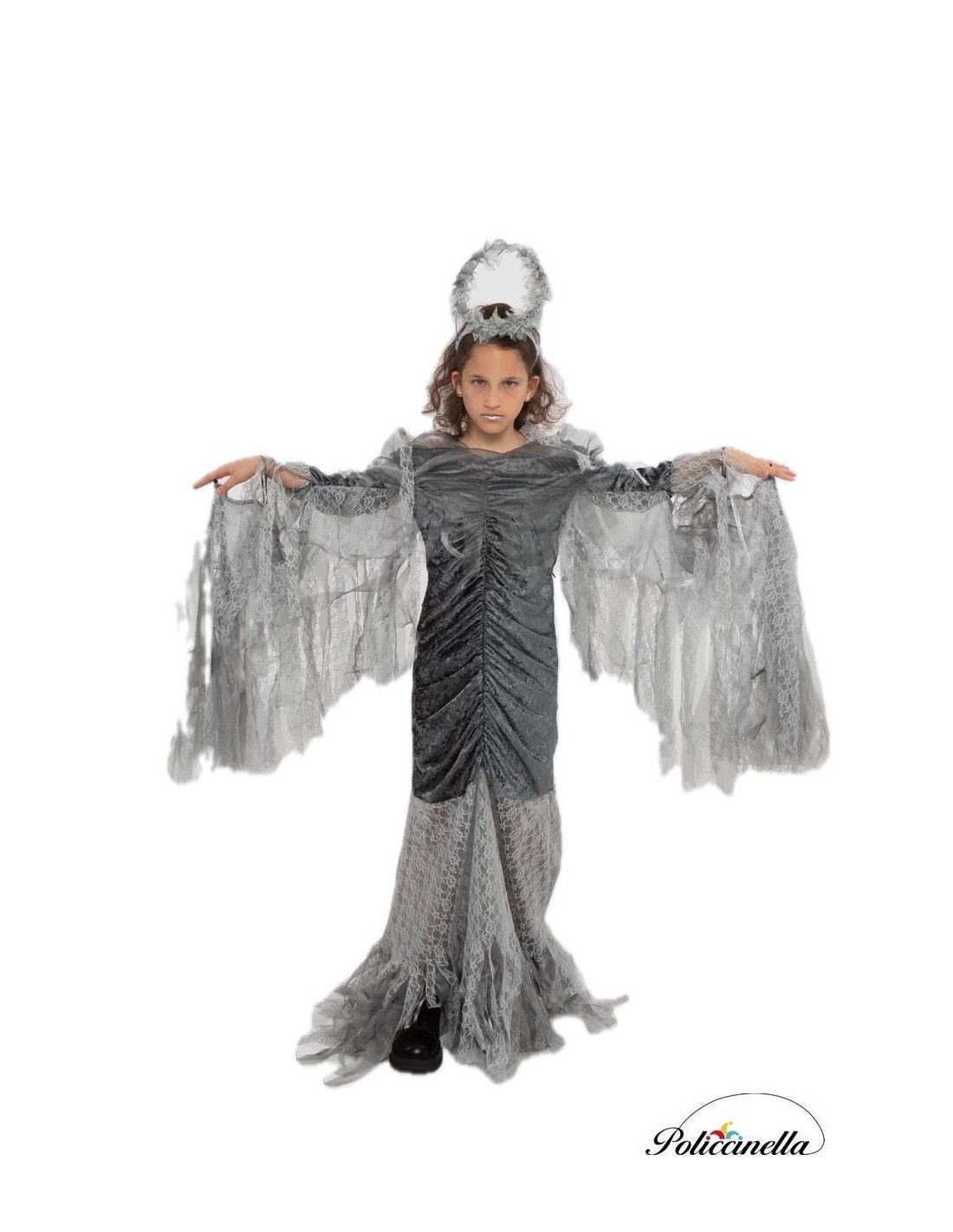 Avvolto in un tocco di mistero e fantasia, questo bellissimo costume di Angelo Caduto farà sentire ogni bambina magica. Il suo abito, realizzato in morbido velluto drappeggiato e parzialmente elastico, si adatta comodamente a diverse silhouette, offrendo libertà di movimento e un fascino avvolgente. Le lunghe ali, cucite lungo le maniche, si aprono e si chiudono con il movimento delle braccia, come se potessero davvero volare! Una spallina di chiffon regolabile aggiunge un tocco delicato, mentre la gonna di pizzo e chiffon, leggera e non trasparente, crea un effetto vaporoso ed elegante. Un completo pieno di stile, mistero e divertimento celestiale.