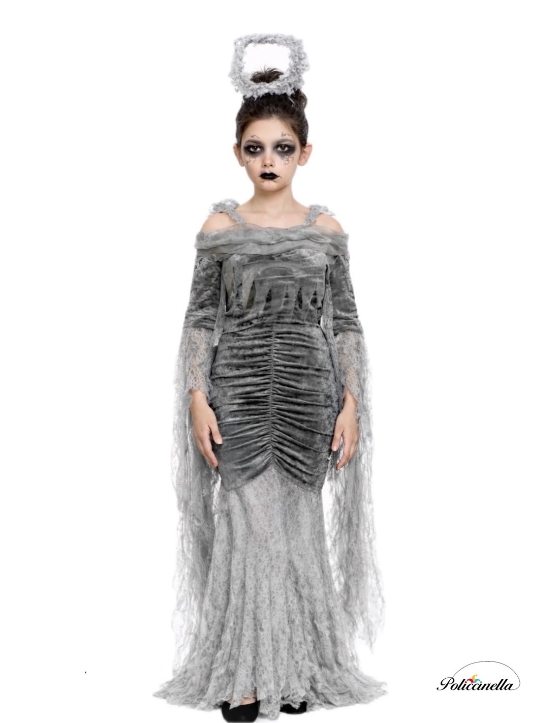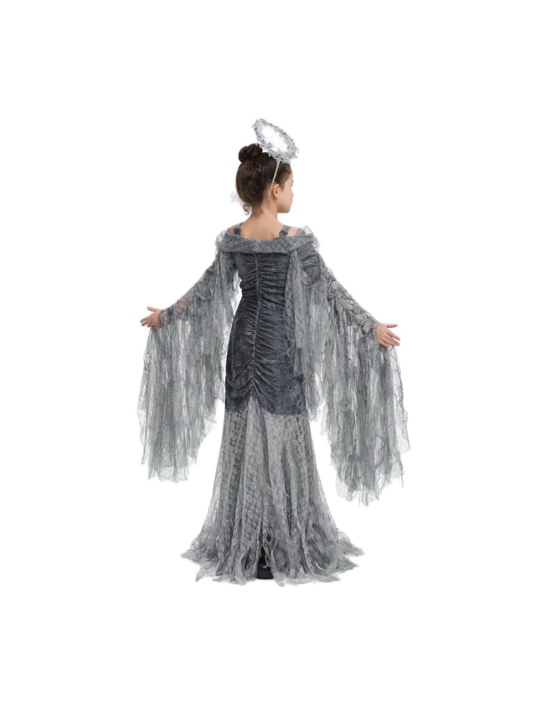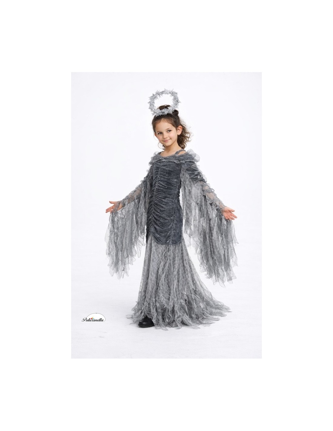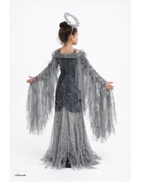 Avvolto in un tocco di mistero e fantasia, questo splendido costume di Angelo Caduto farà sentire ogni bambina magica. Il vestito, realizzato in morbido velluto drappeggiato e leggermente elastico, si adatta comodamente a diverse silhouette, offrendo libertà di movimento e una vestibilità incantevole. Le lunghe ali, cucite lungo le maniche, si aprono e si chiudono con il movimento delle braccia, come se potesse davvero volare! Una spallina in chiffon regolabile aggiunge un tocco delicato, mentre la gonna di pizzo e chiffon, leggera e non trasparente, crea un effetto vaporoso ed elegante. Un completo pieno di stile, mistero e divertimento celestiale.