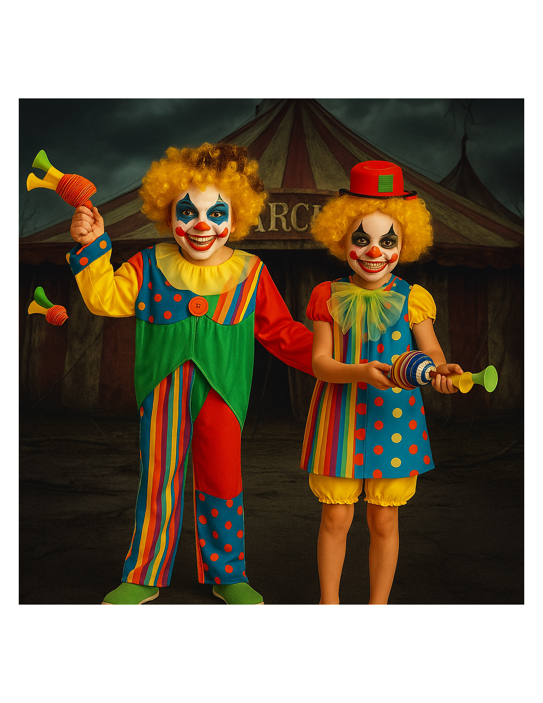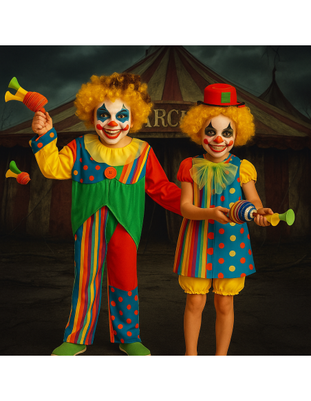 Divertente set composto da una camicia dal taglio a levita in morbido tessuto in maglia semielastico, con chiusura a strappo sul collo. Include un vistoso bavaglino decorativo, grande bottone rosso cucito sul davanti e papillon in tulle verde limone per un tocco extra di simpatia. I pantaloni, realizzati nello stesso tessuto, presentano una comoda cintura elastica e pratiche tasche interne. Ideale per spettacoli, animazioni e feste.