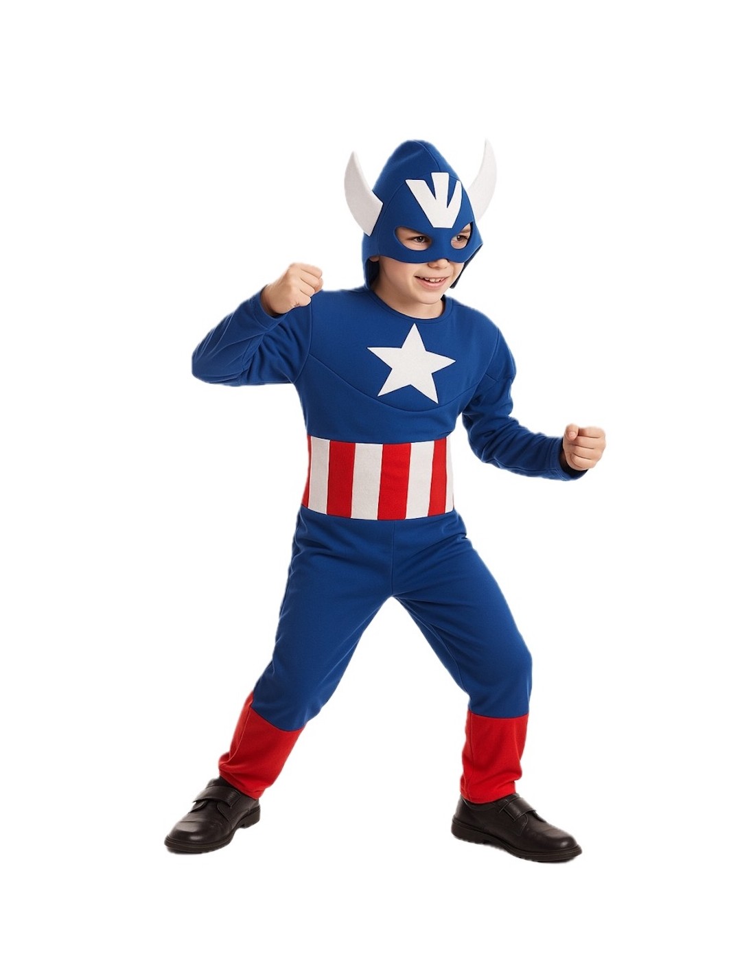 Include una comoda tuta in morbido tessuto con zip invisibile sul retro e sul cavallo per una maggiore comodità. Il petto e le spalle sono imbottiti per un effetto muscoloso realistico, con un pezzo di feltro fitto sul davanti attaccato al capo, che decora l'abito con stile. Si completa con un vistoso elmo con corna, il tutto foderato per mantenere la sua forma e struttura. Un insieme spettacolare e comodo per brillare come l'eroe di qualsiasi avventura!