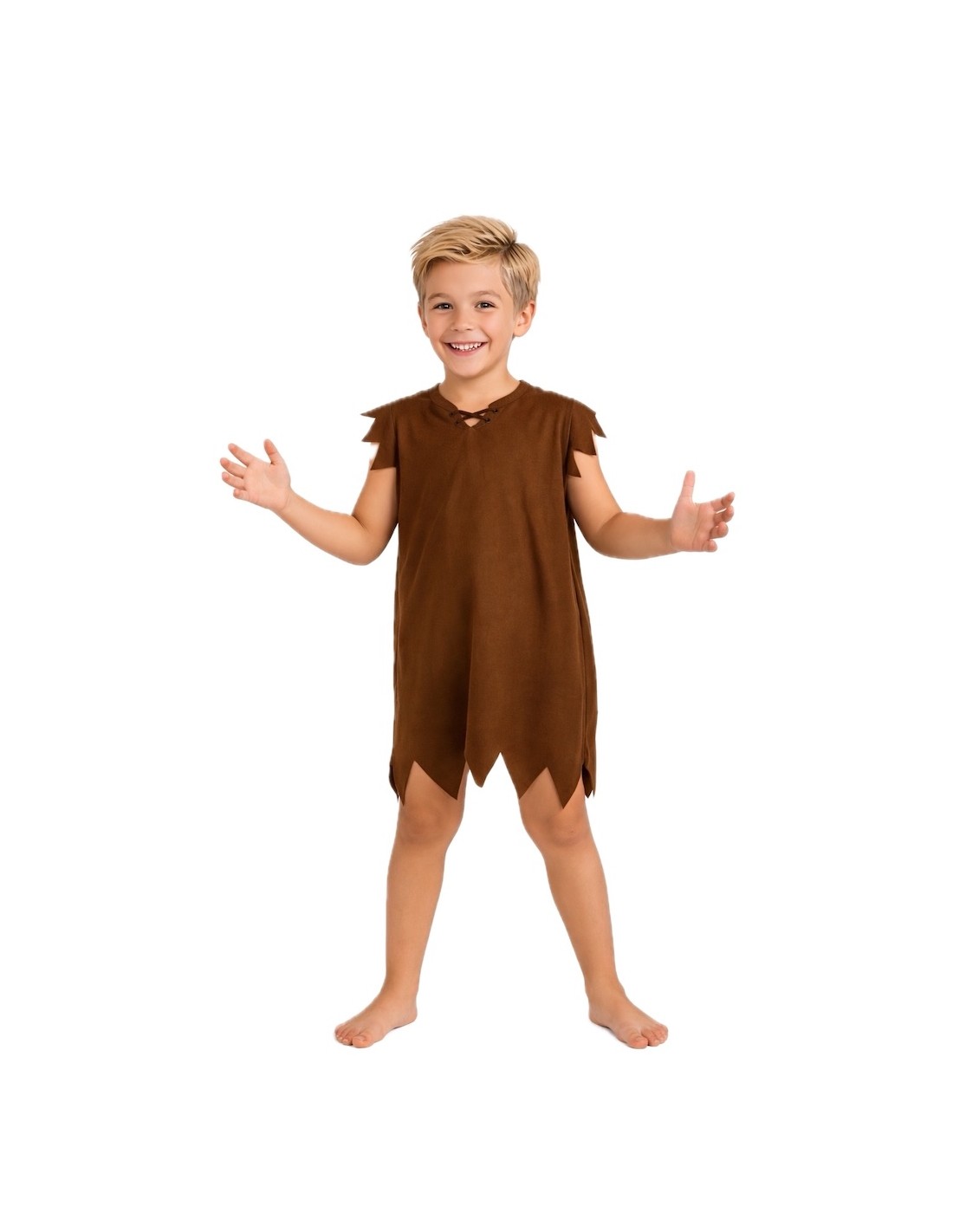 Divertente costume, ideale per trasportarti nell'età della pietra con stile. È composto da una giacca dal tocco vellutato e morbido, con chiusura al collo nella parte posteriore con velcro per maggiore comodità. Il caratteristico collo a zigzag è decorato con nastri di raso che gli conferiscono un tocco autentico e originale. Un costume semplice, comodo e pieno di fascino per trasformarti nel cavernicolo più famoso di tutti!