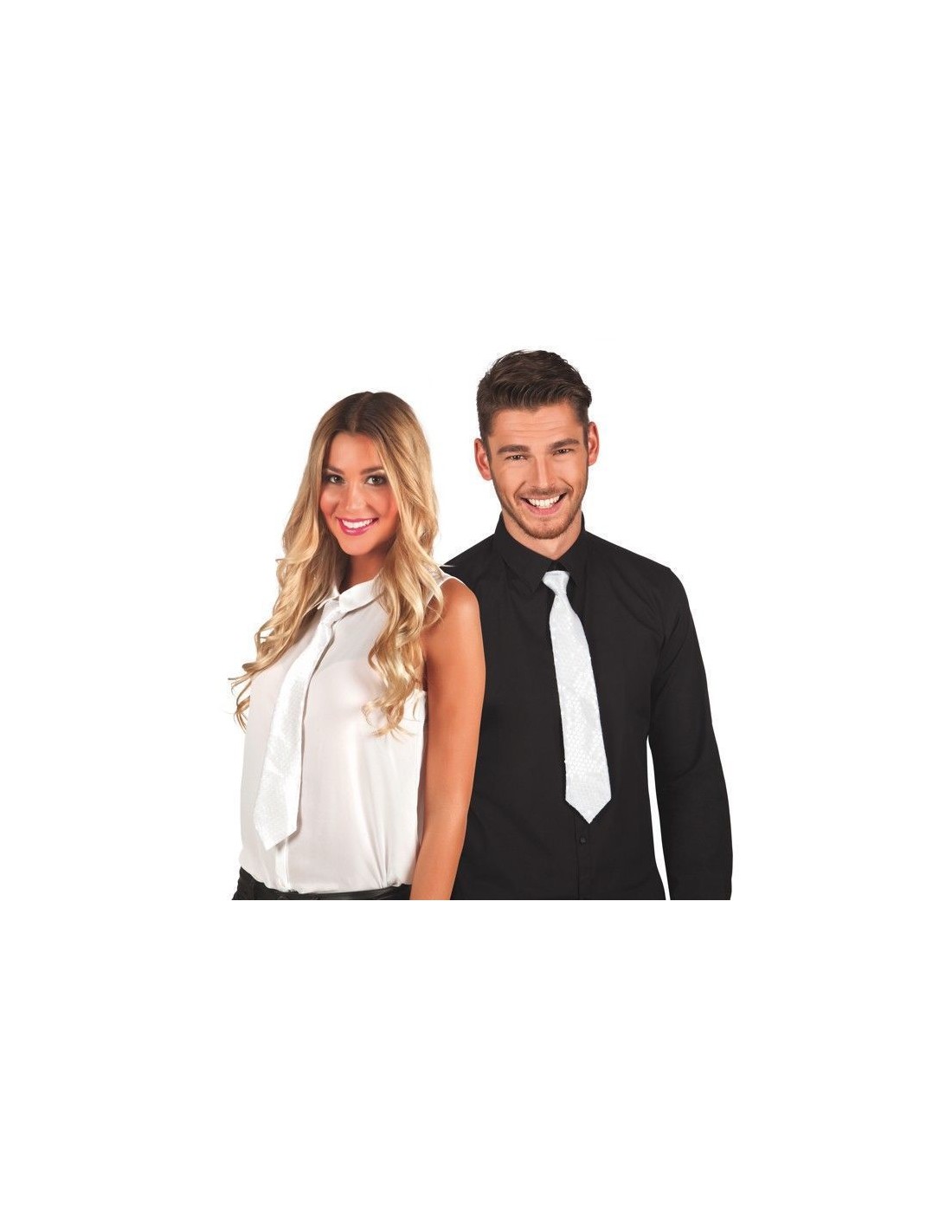 gravata de lantejoulas branca de 40cm