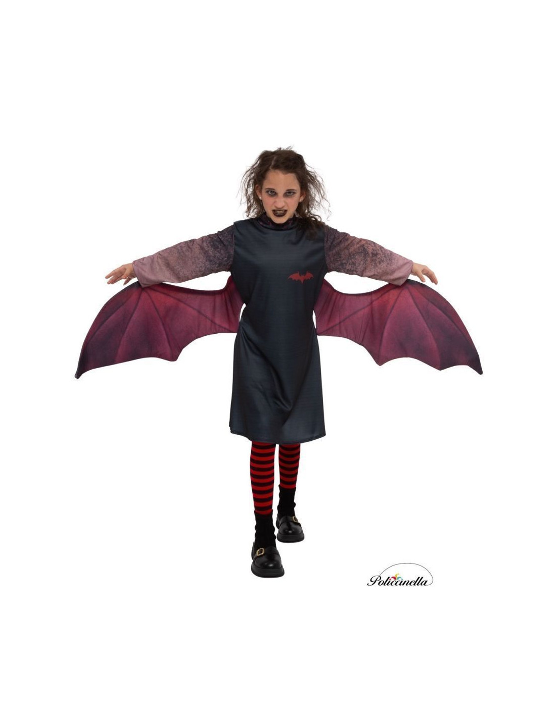 Esta fantástica fantasia, feita em malha com desenho impresso digitalmente, apresenta um fecho invisível na parte de trás e umas asas atraentes feitas do mesmo material do vestido, à altura da cintura. As asas são feitas com uma peça de feltro aderida e revestidas pelo mesmo tecido do vestido, com o objetivo de conferir à peça certa rigidez, mas ao mesmo tempo elasticidade para permitir liberdade de movimento. Além disso, possuem uma pulseira para inserir a mão e segurá-las pelos pulsos, acompanhando o movimento dos braços sem precisar segurá-las ou agarrá-las, e não pesam nada! Este traje é complementado por umas meias-calças densas e elásticas combinando com o resto da fantasia.