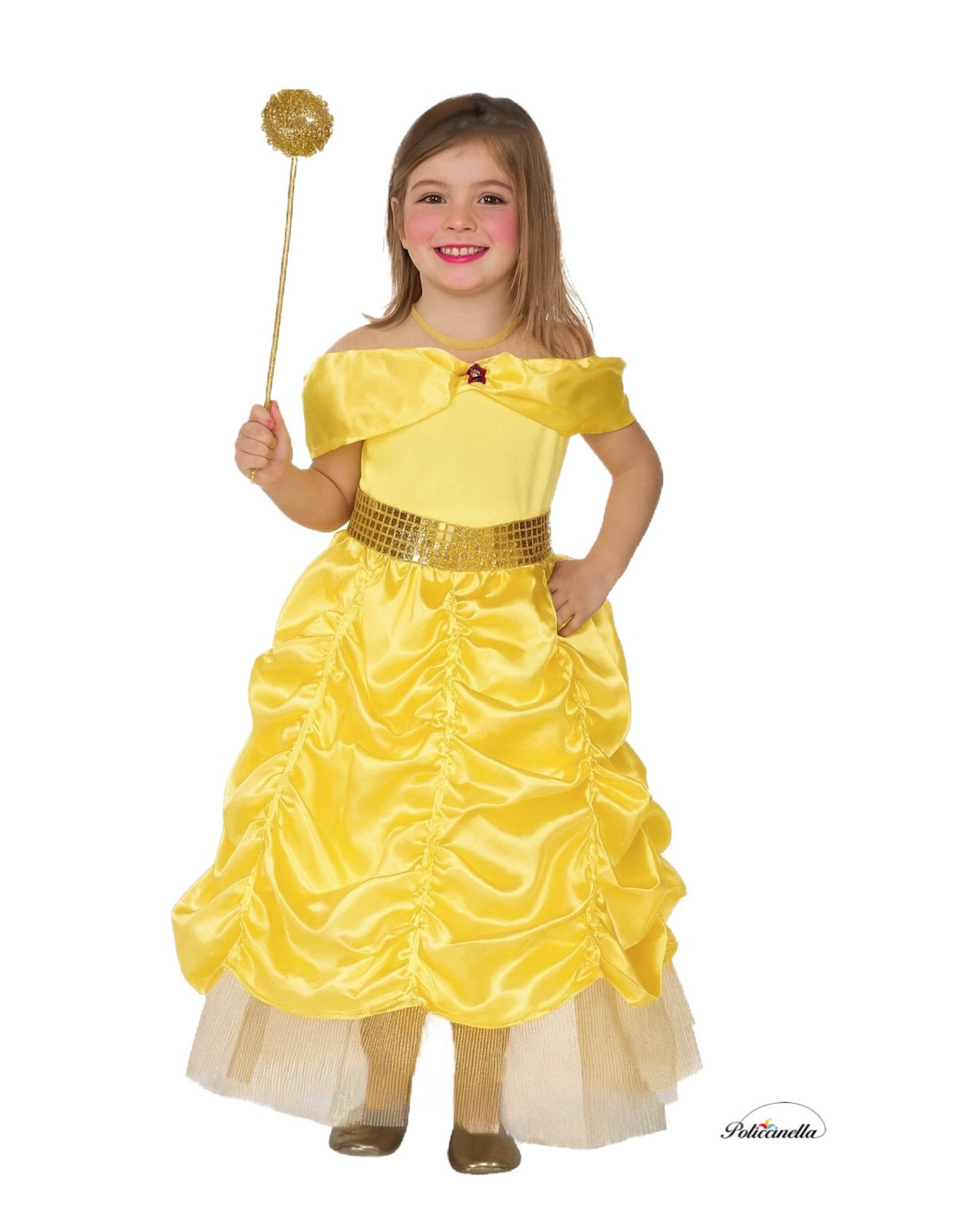Deslumbrar com este lindo vestido princesa, feito em cetim suave de grande qualidade. Apresenta o decote Bardot com ombros cobertos de tule e fechamento de zíper nas costas. O corpo, com um ponto semolástico, adapta-se confortavelmente, enquanto a saia dobrada fornece vôo e movimento. Inclui cancan interno em TNT com tule dourado que aparece delicadamente pelo baixo. O decote parece uma peça que simula um rubi e a cintura é aprimorada com um cinto de ouro decorado com cores brilhantes, ajustável por velcro. Um design encantador que se apaixona à primeira vista.